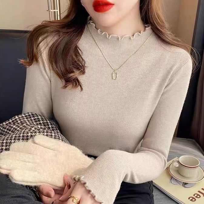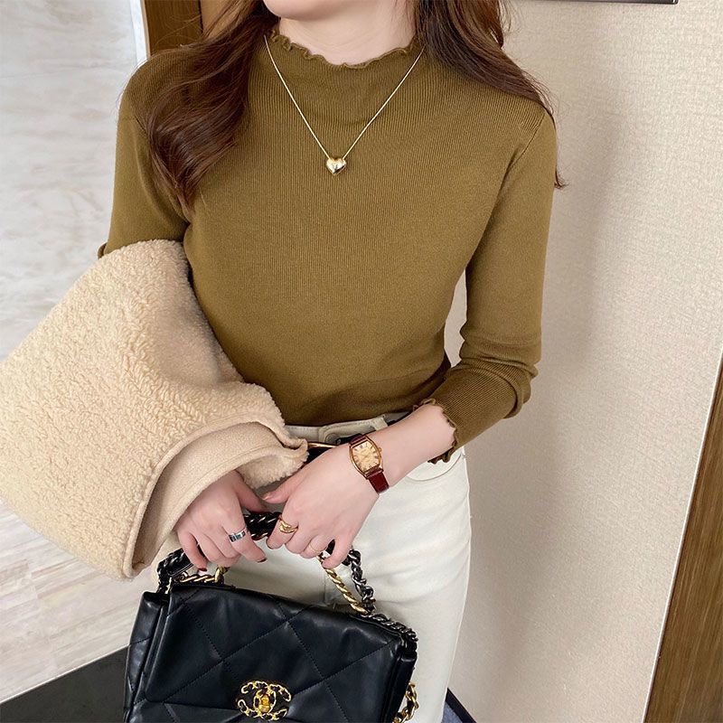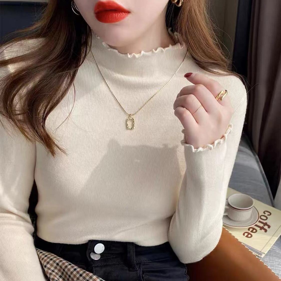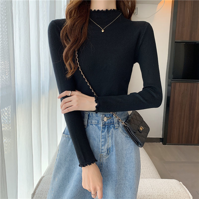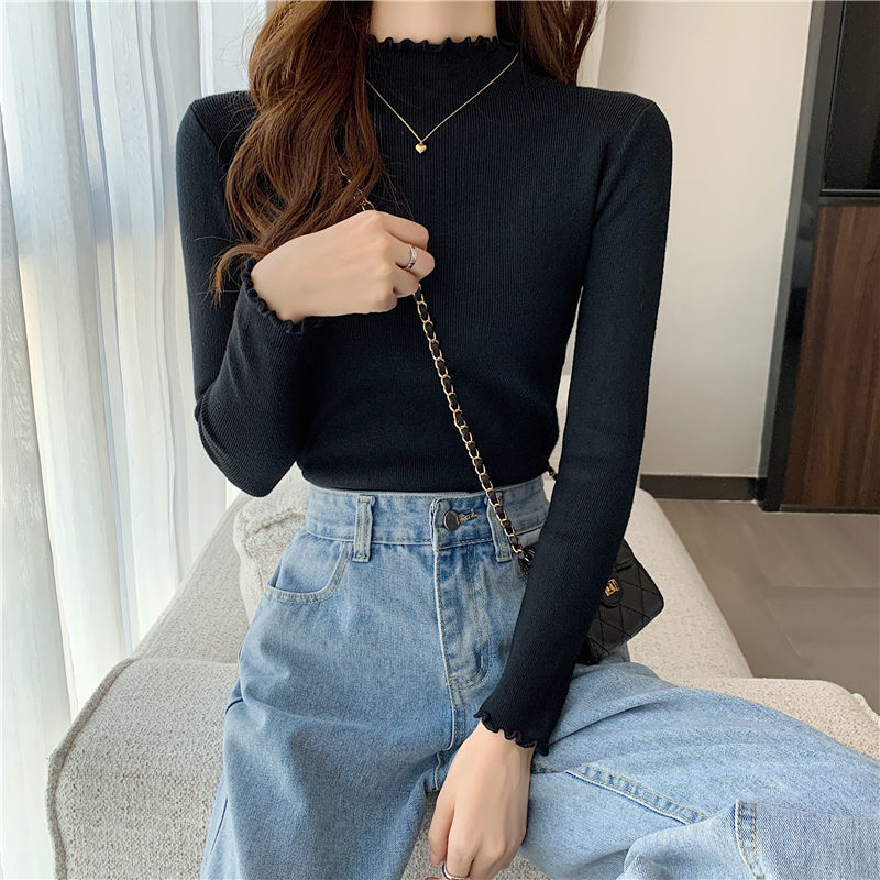 2025 한국식 서양식 귀달이 하프 터틀넥 스웨터 여성 가을 겨울 슬림핏 얇은 이너 레이어드 셔츠 탑 트렌디