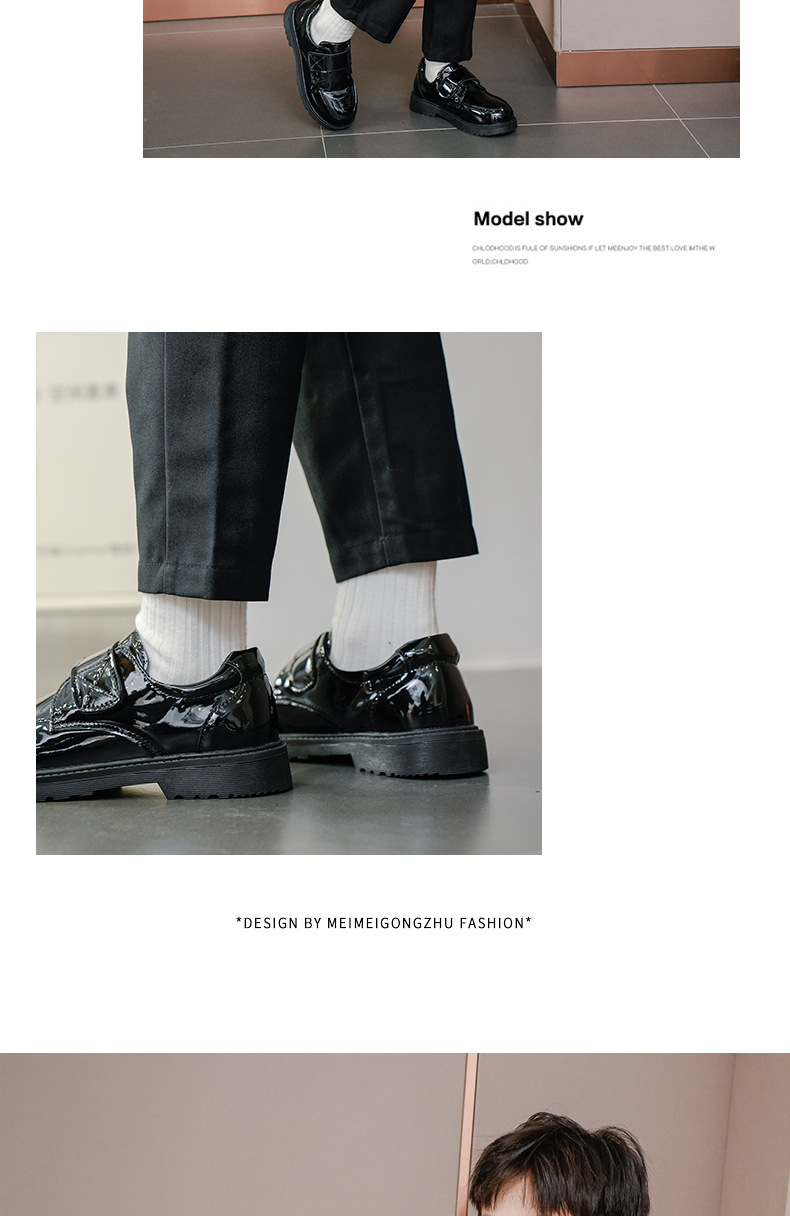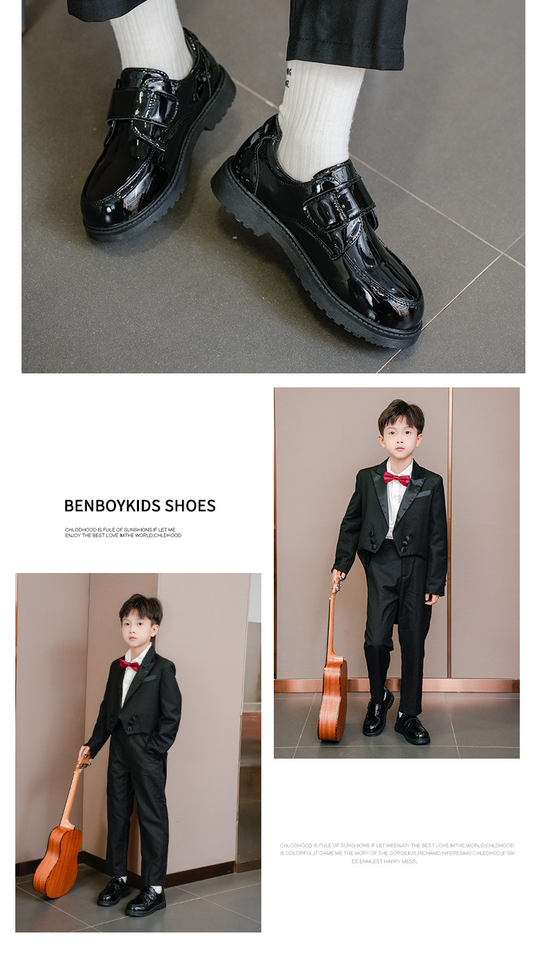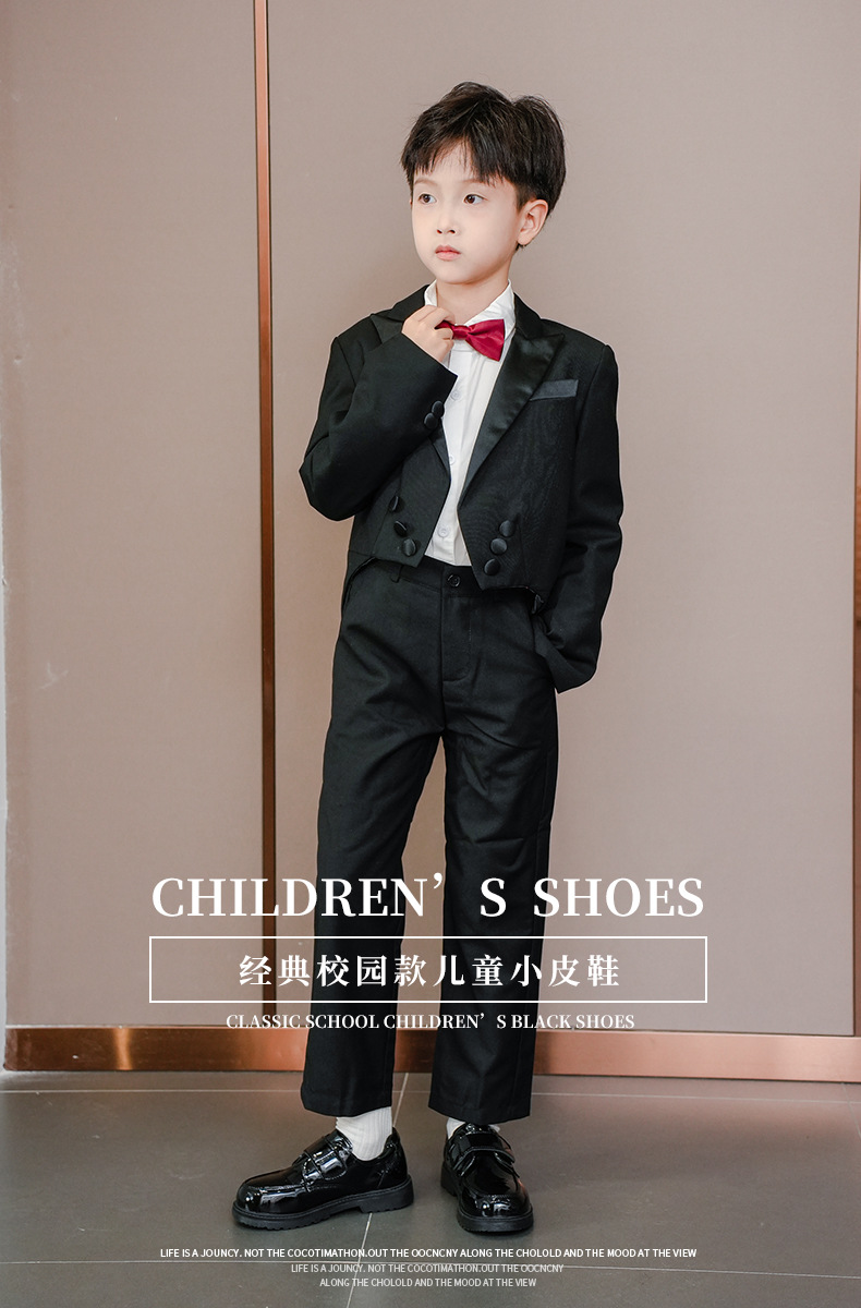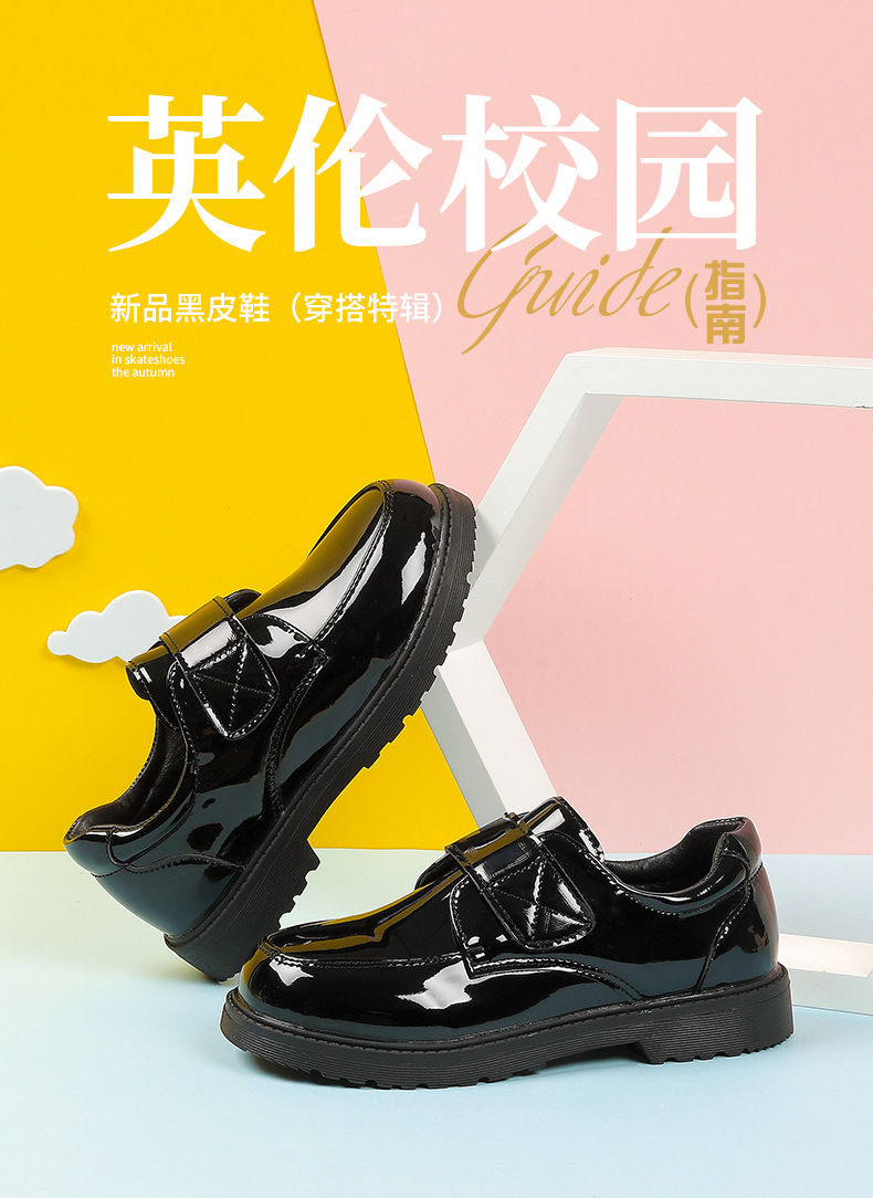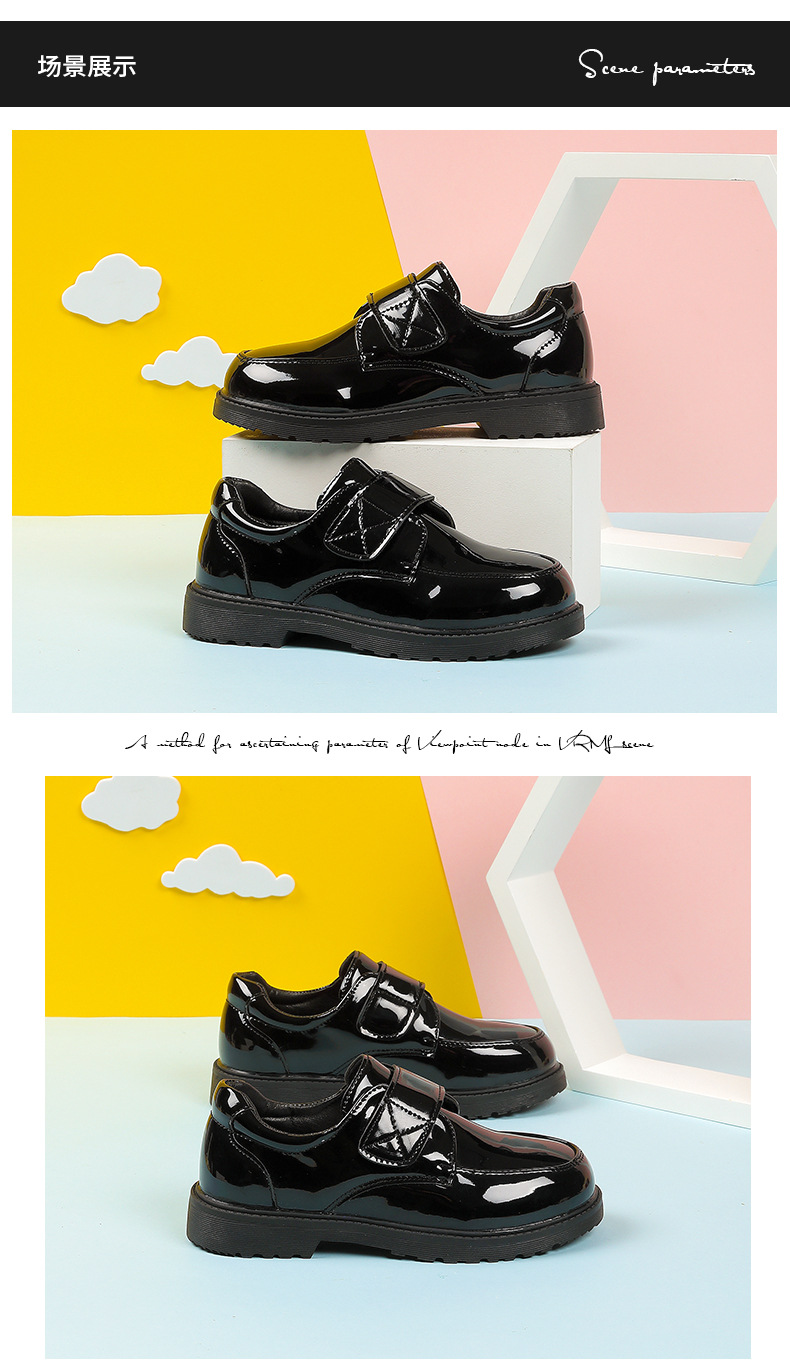 어린이 가죽 신발 소년 신발 봄과 가을 2023 어린이와 초등학생을위한 새로운 영국 스타일 블랙 학교 신발