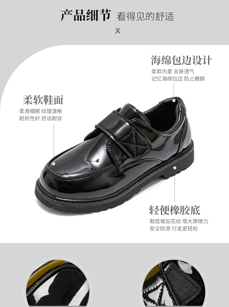 어린이 가죽 신발 소년 신발 봄과 가을 2023 어린이와 초등학생을위한 새로운 영국 스타일 블랙 학교 신발스토어 가기