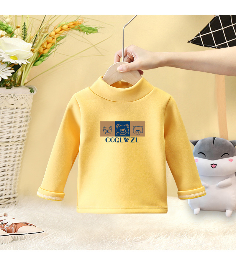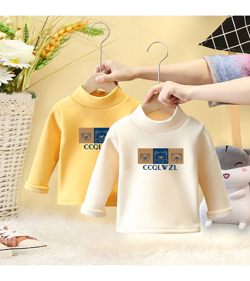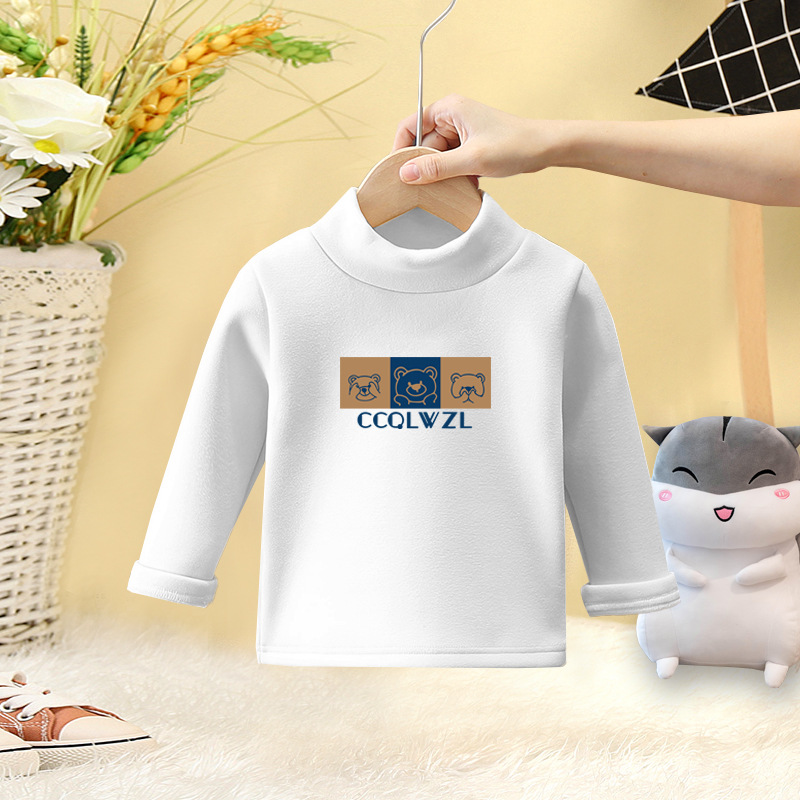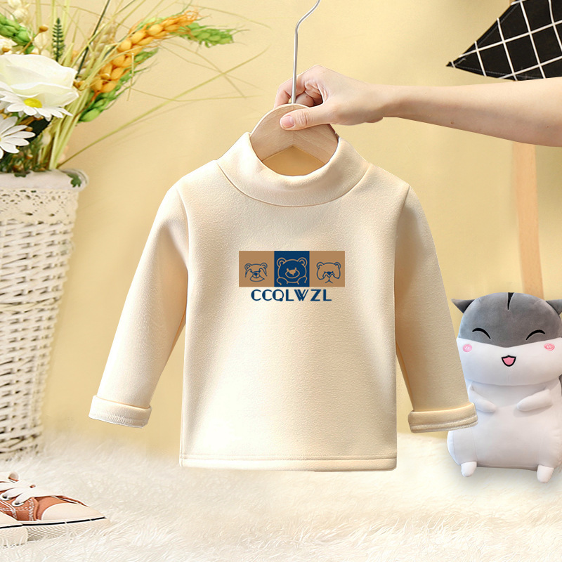 공장 도매 아동복 아기 가을과 겨울 따뜻한 긴팔 티셔츠 가을 옷 어린이 벨벳 하프 하이 칼라베이스 셔츠스토어 가기