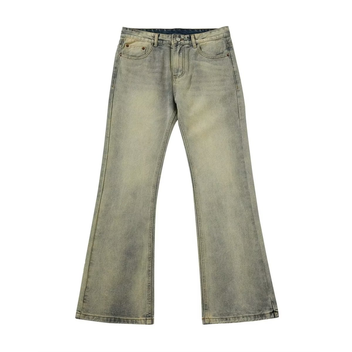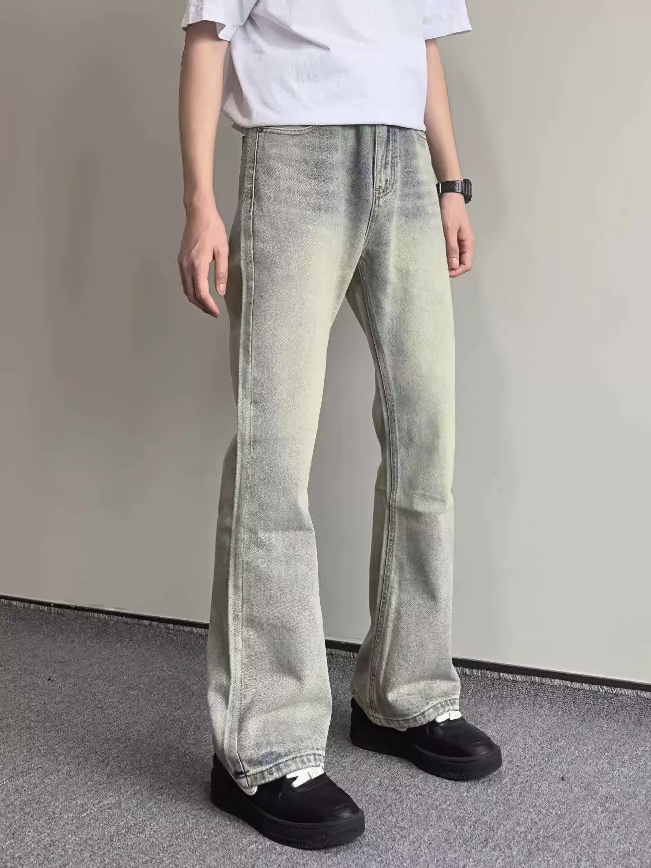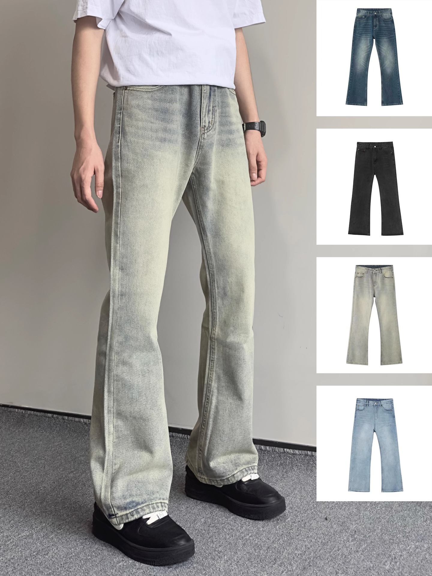 美式复古街头水洗百搭微喇牛仔裤休闲做旧拉链休闲长裤vibe潮裤子