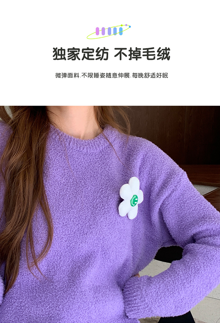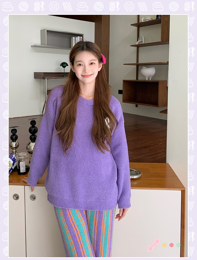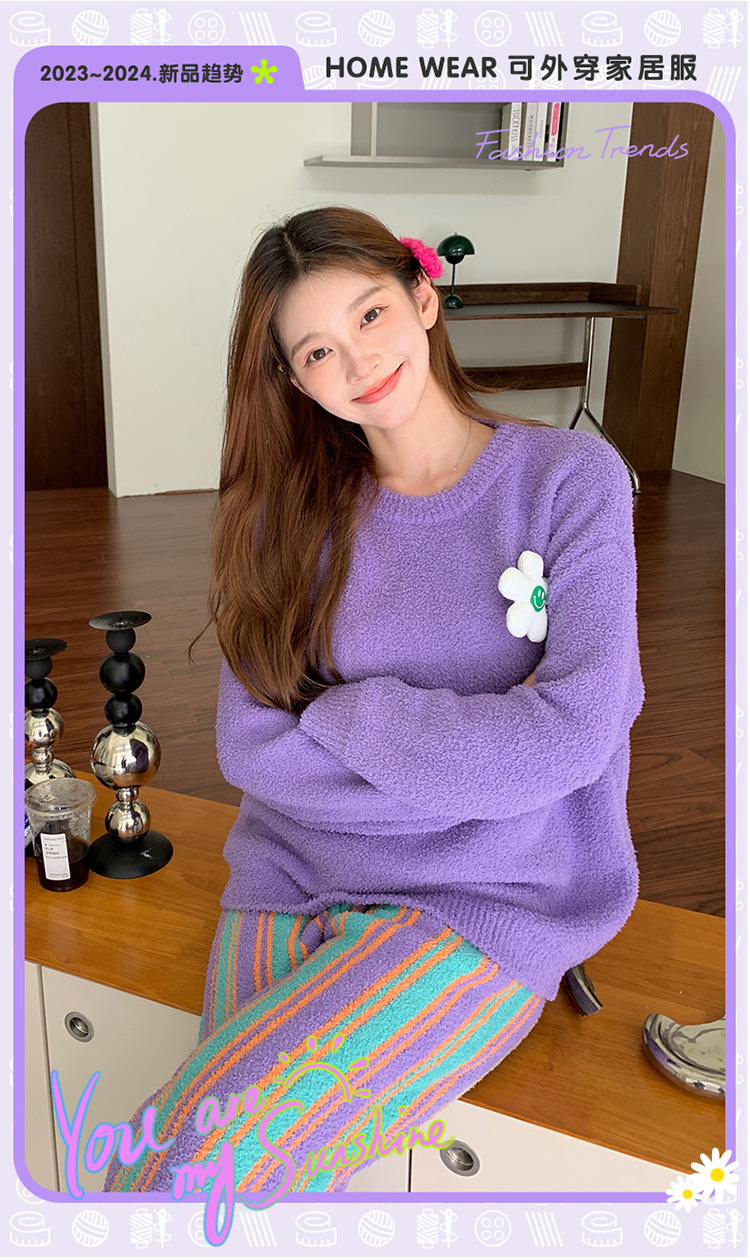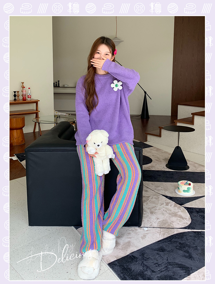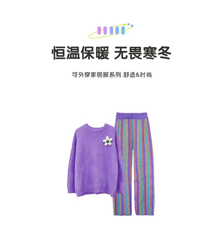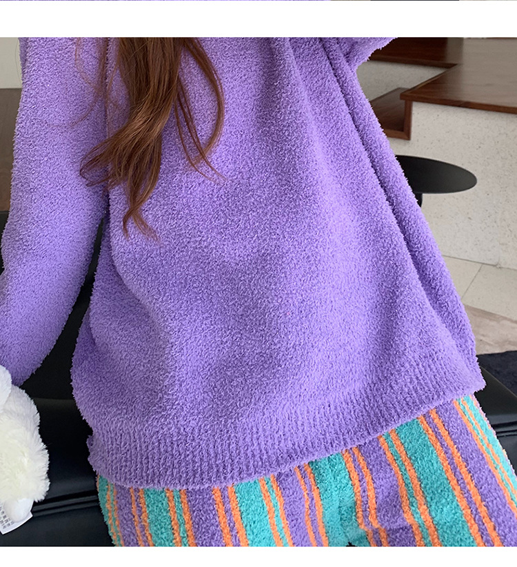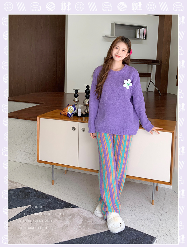 웨어러블 홈 의류 색상 캔디 스트라이프 꽃 부드러운 잠옷 여자의 가을과 겨울 두꺼운 따뜻한 니트 세트스토어 가기