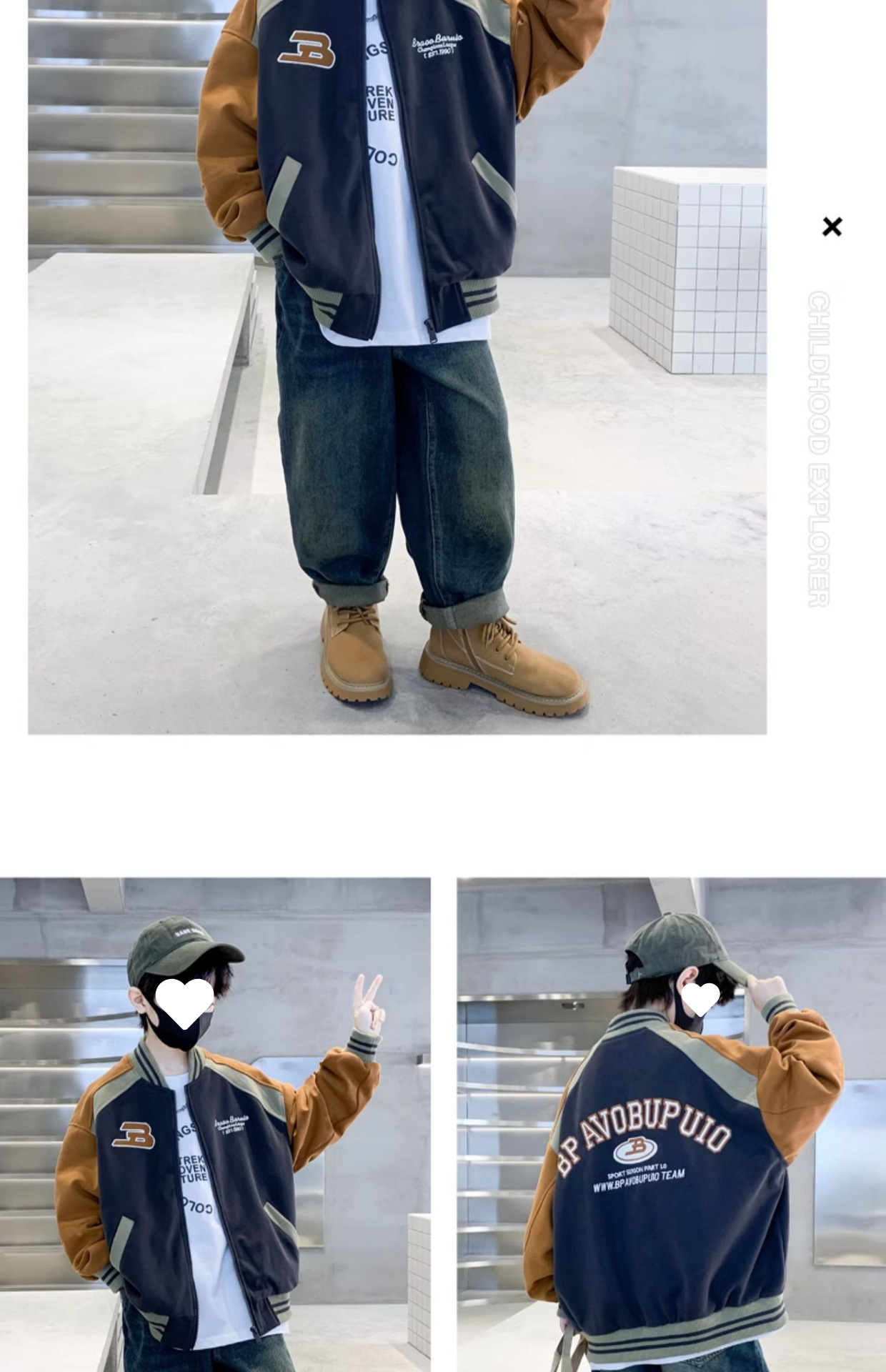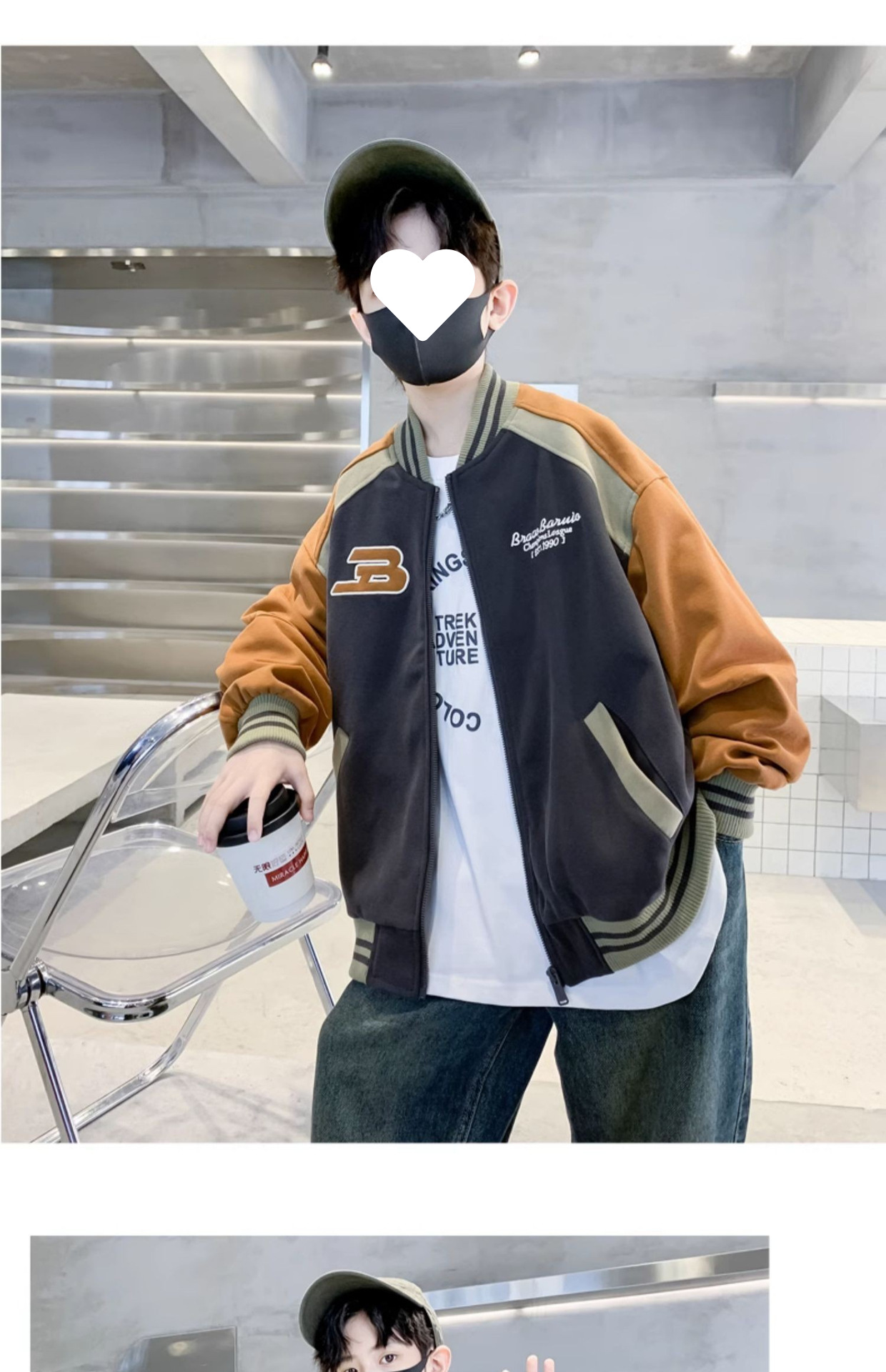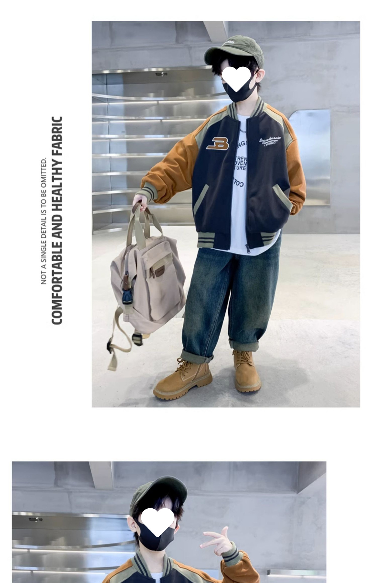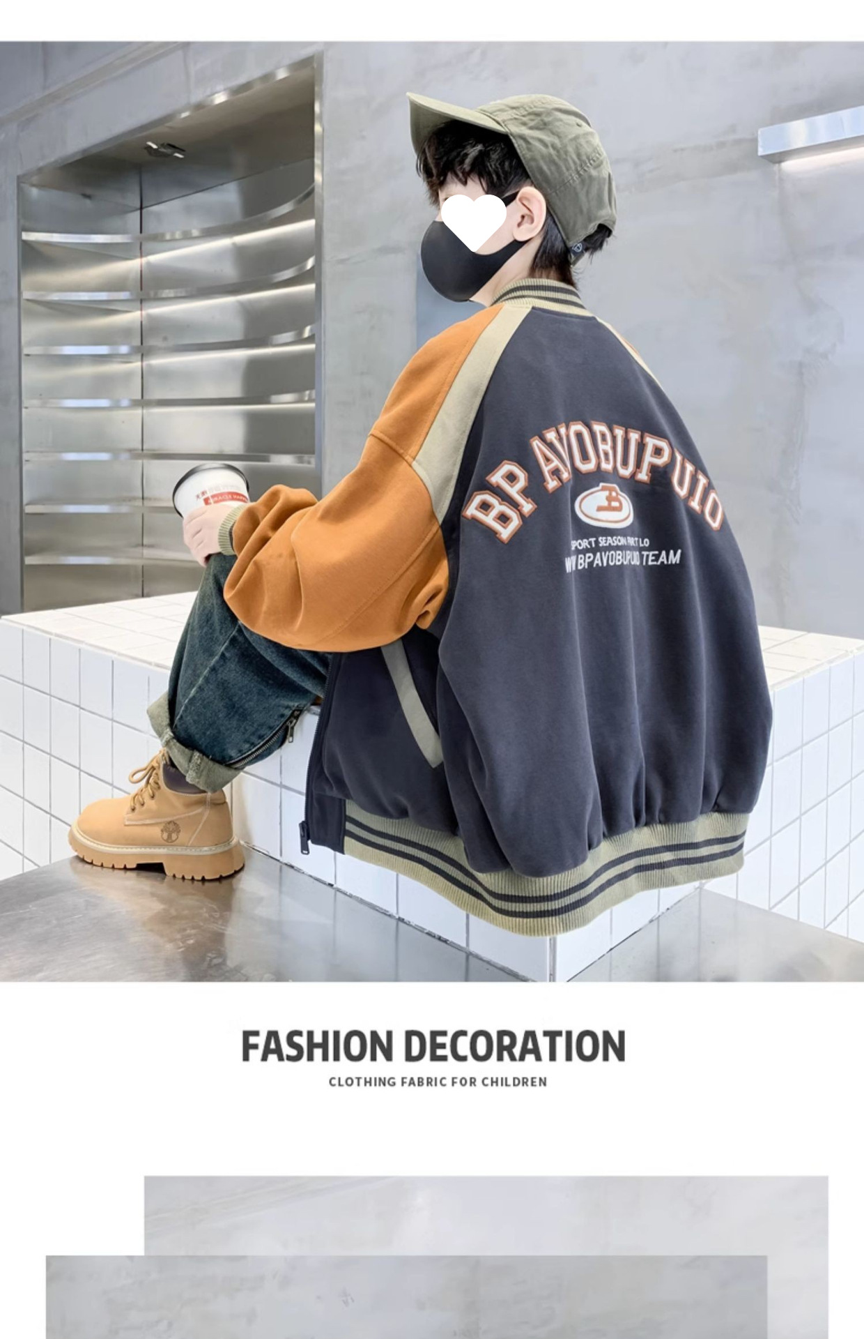 소년 겨울 스티치 야구 세트 재킷 2023 새로운 기모 두꺼운 색상 일치 일본 비행 세트 재킷 카디건스토어 가기