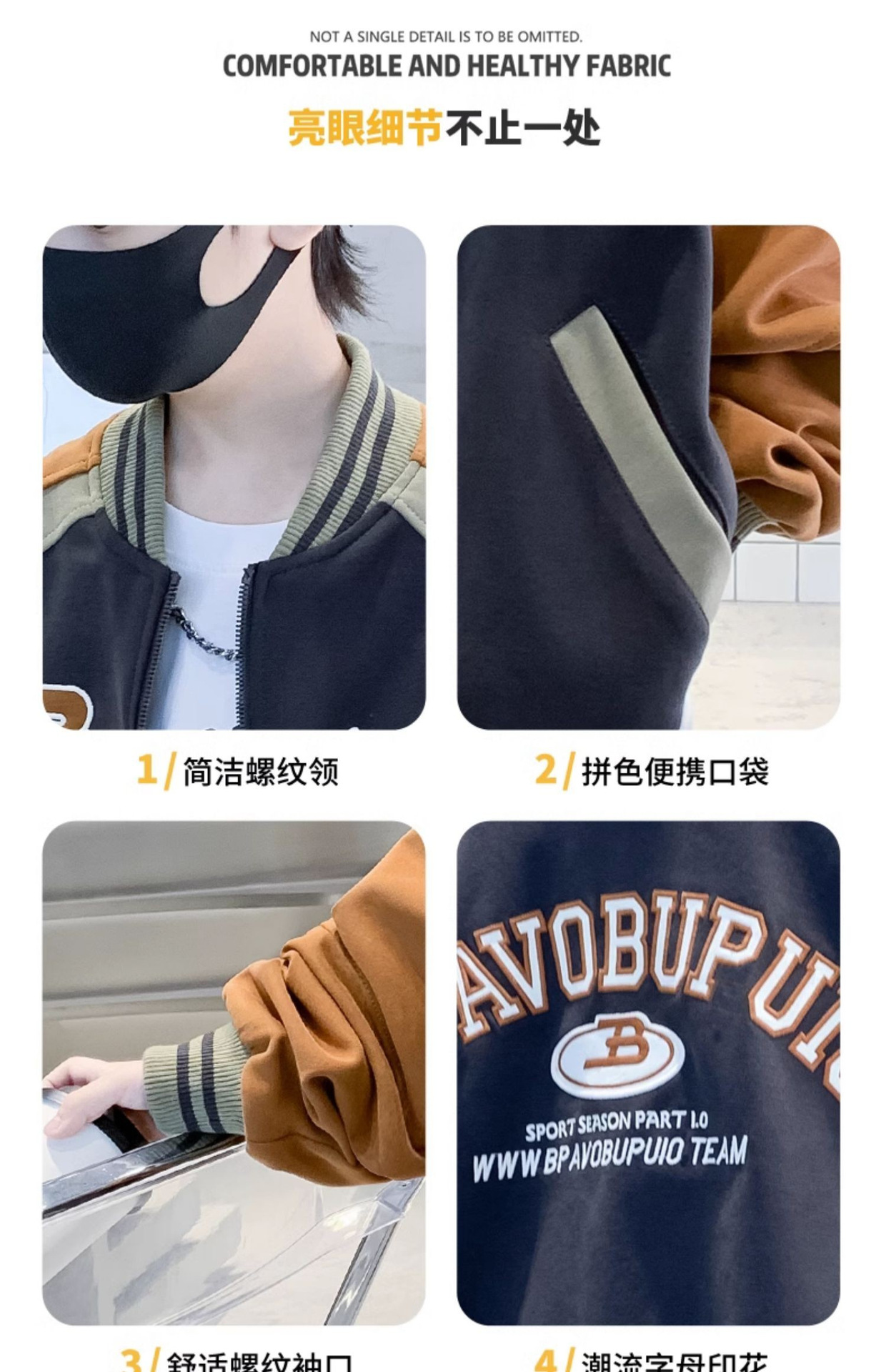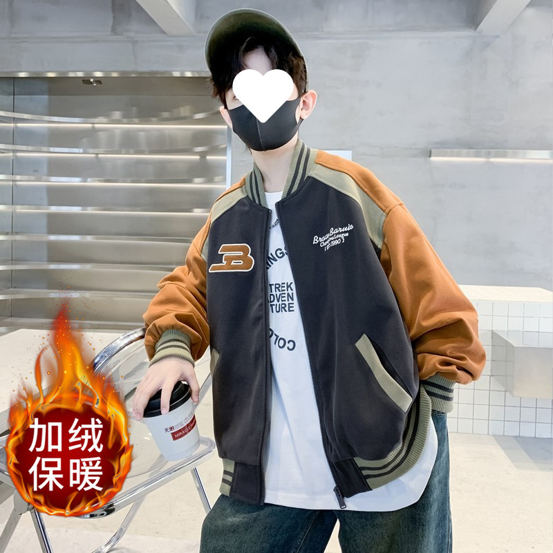 소년 겨울 스티치 야구 세트 재킷 2023 새로운 기모 두꺼운 색상 일치 일본 비행 세트 재킷 카디건