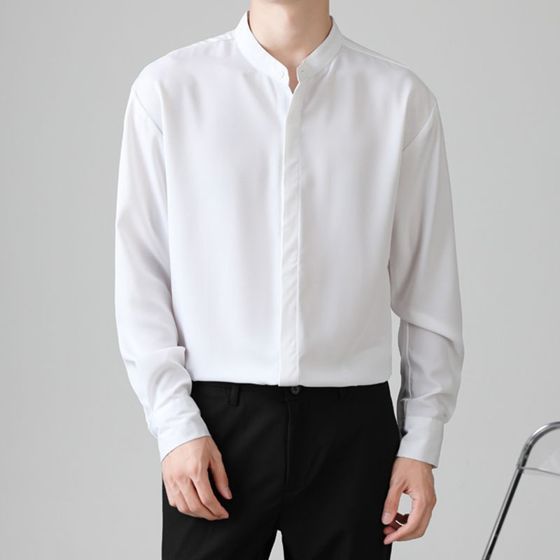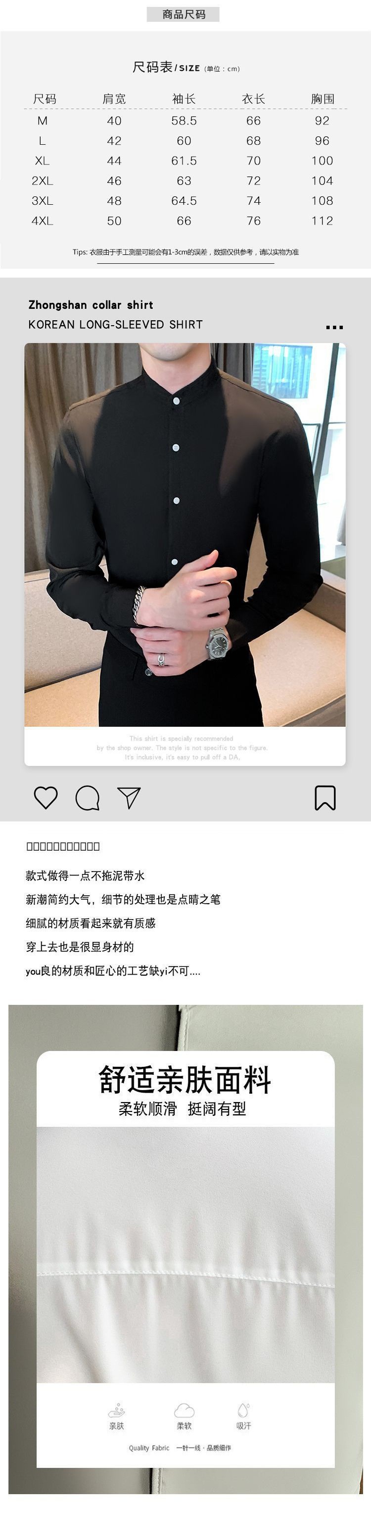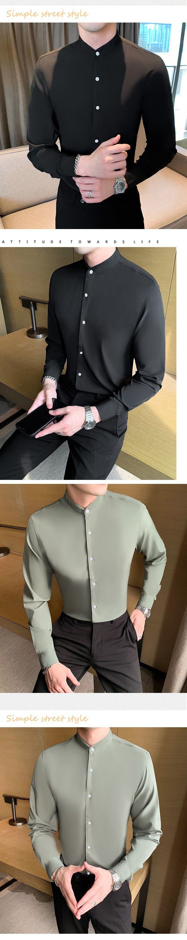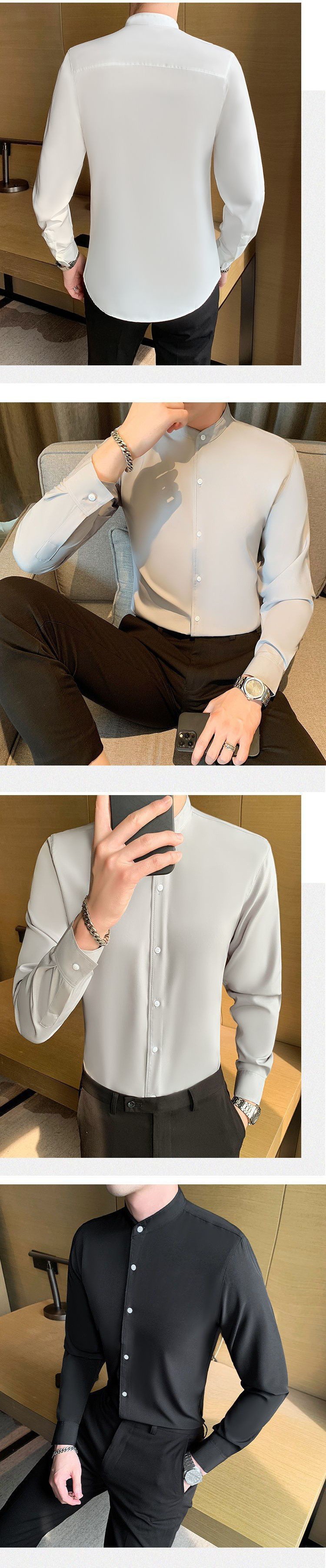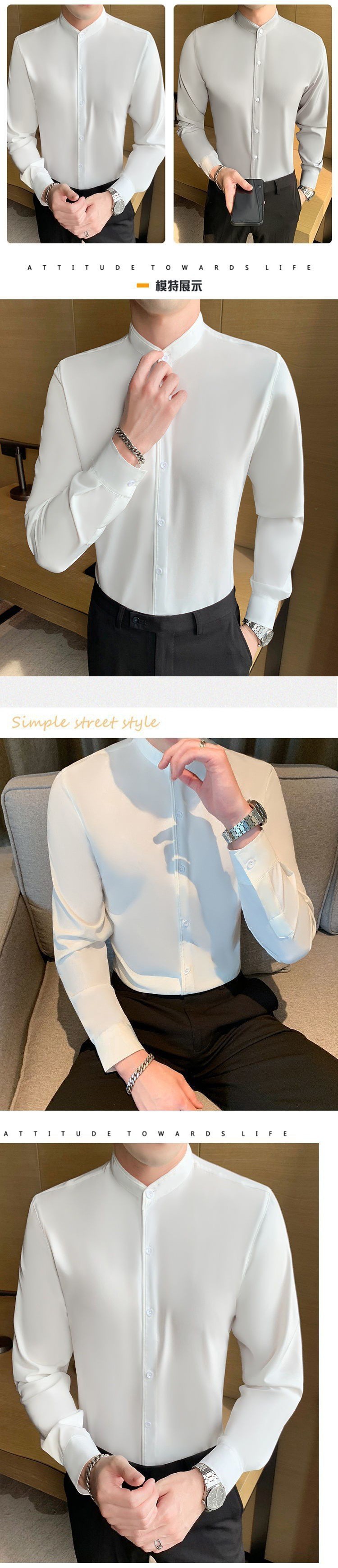 중국 남성용 칼라 중산 세트 크루 넥 셔츠 칼라리스 셔츠 남성용 슬림 핏 소형 칼라 비즈니스 칼라 셔츠 남성용스토어 가기