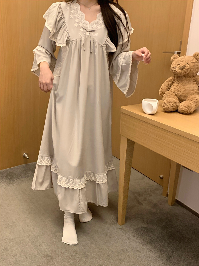한국 스타일 가을 새로운 프랑스 스타일 법원 스타일 커플 잠옷 인터넷 연예인 긴 소매 잠옷 여자의 느슨한 가정 옷 세트 남자스토어 가기