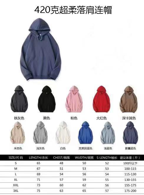 420g 화면면 후드티 가을 겨울용 초부드러운 루즈핏 스웨트셔츠 인기 단색 플러스 벨벳 두꺼운 남성용 상의스토어 가기