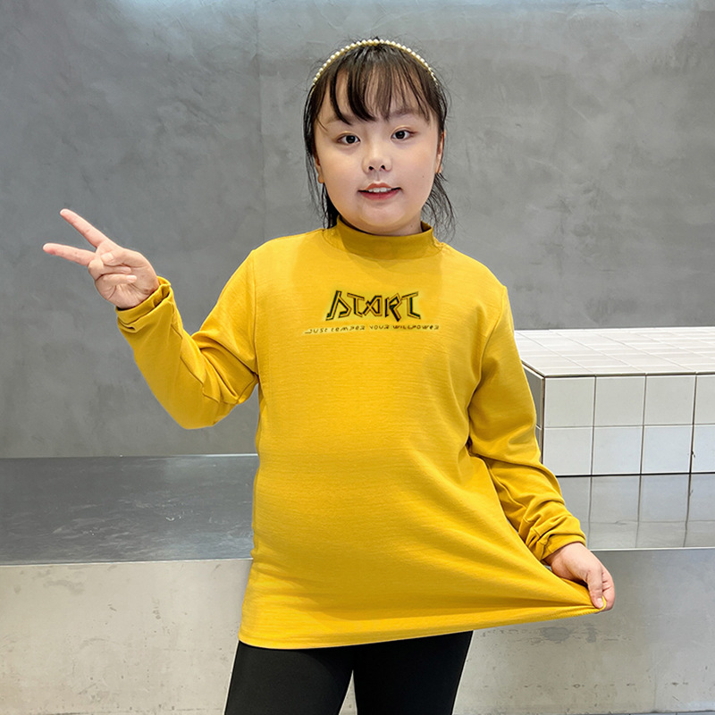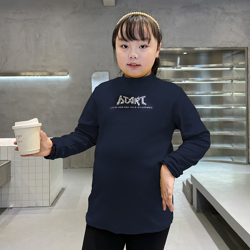 뚱뚱한 여자 기본 셔츠 플러스 뚱뚱한 초대형 긴 소매 티셔츠 플러스 사이즈 따뜻한 가을 옷 중대형 어린이 반 높은 칼라 탑 중간 두꺼운 9
