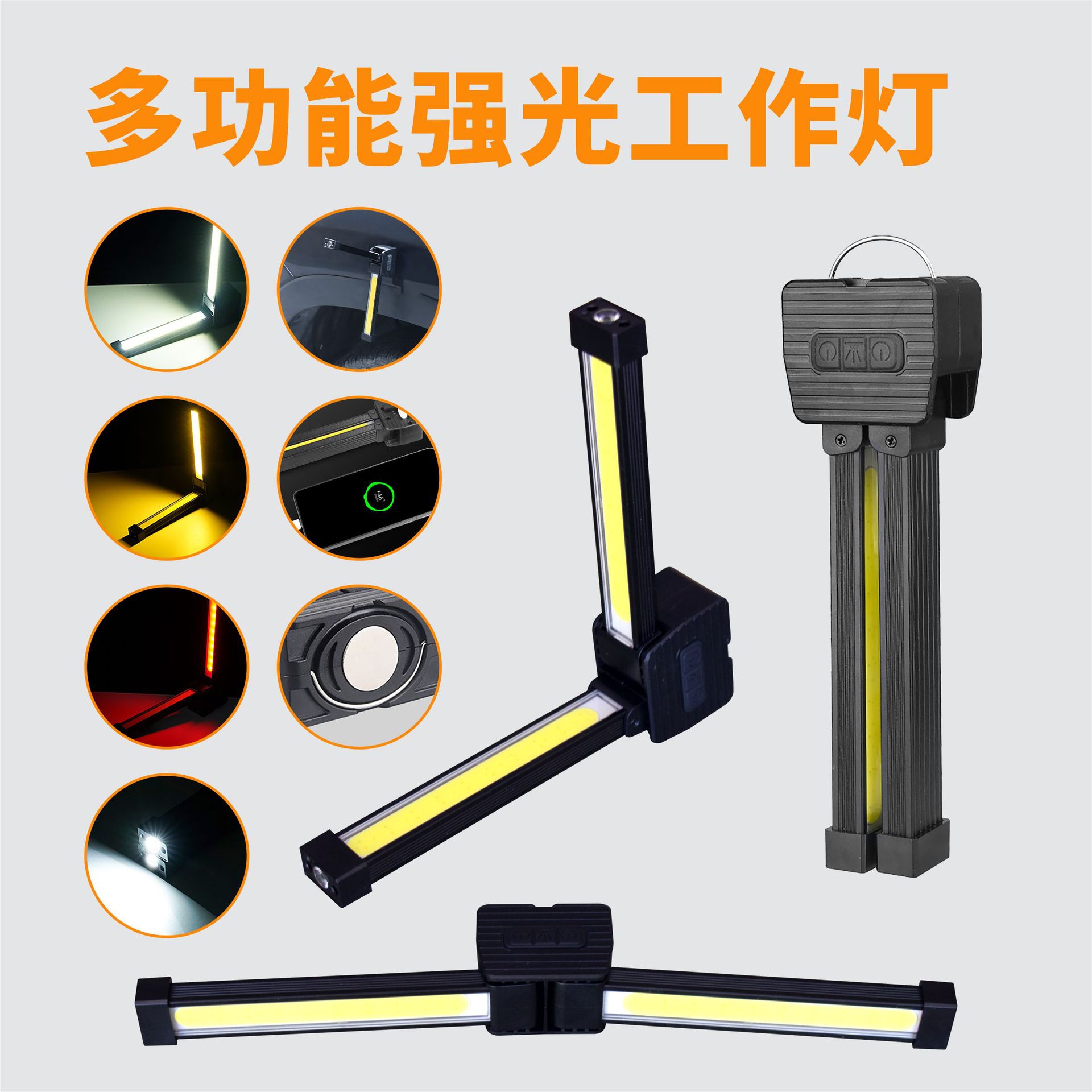 B135 국경 강한 빛 손전등 야외 다기능 캠핑 조명 손전등 자동 수리 작업 램프 접히는 COB 램프