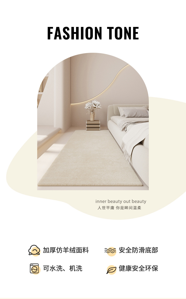 따뜻한 색상 크림 스타일 모조 캐시미어 카펫 가정용 침실 냉 단열 따뜻한 침대 옆 담요 프랑스 미끄럼 방지 카펫 전체 상점스토어 가기