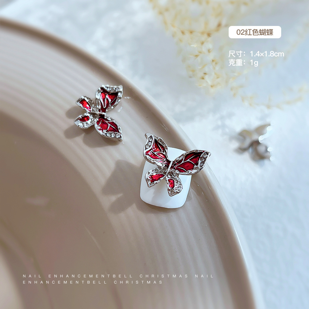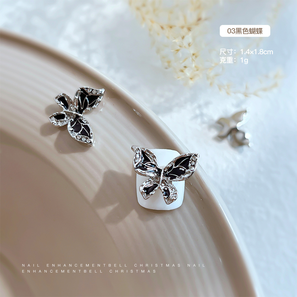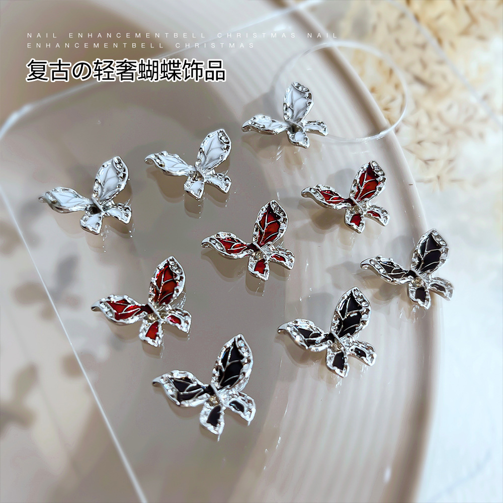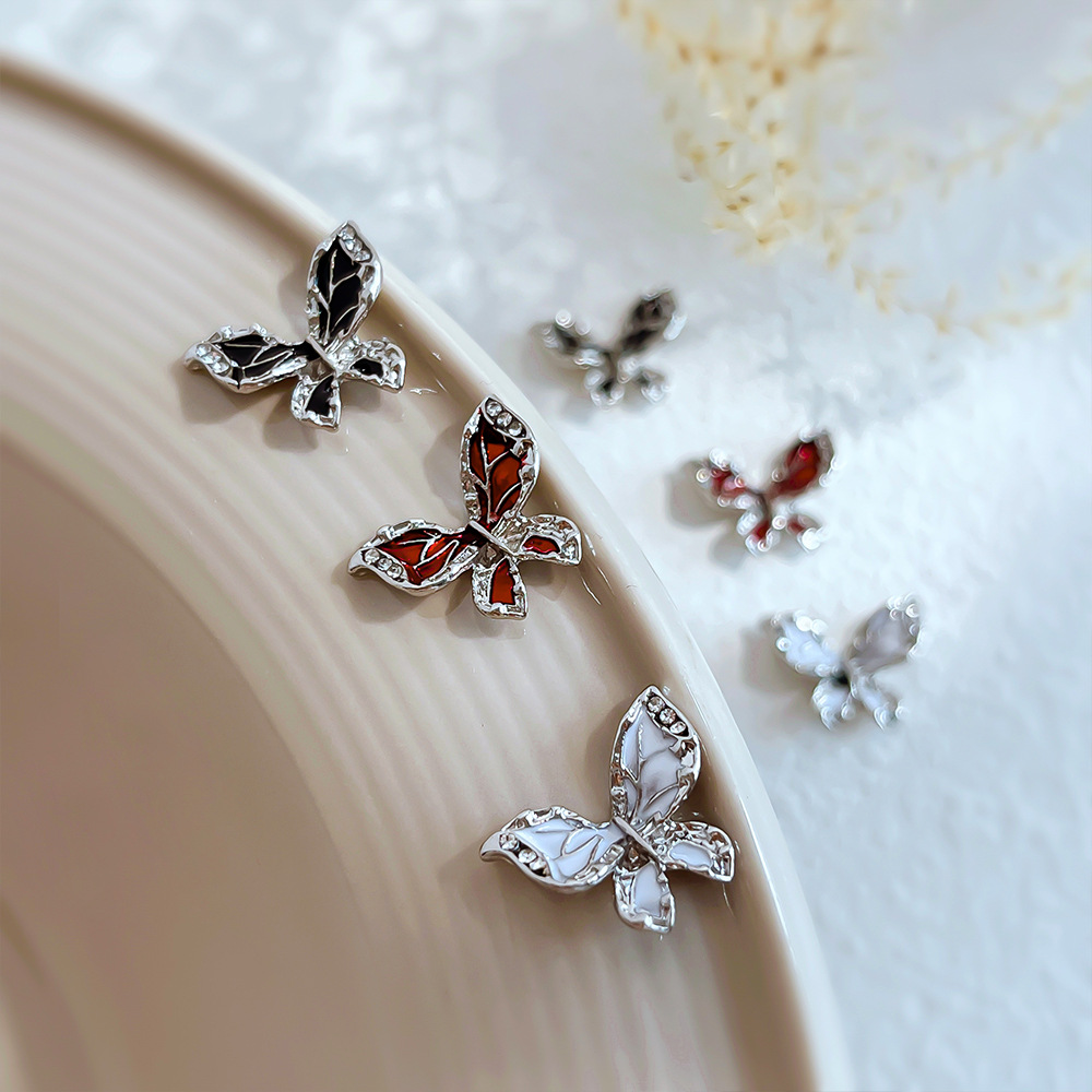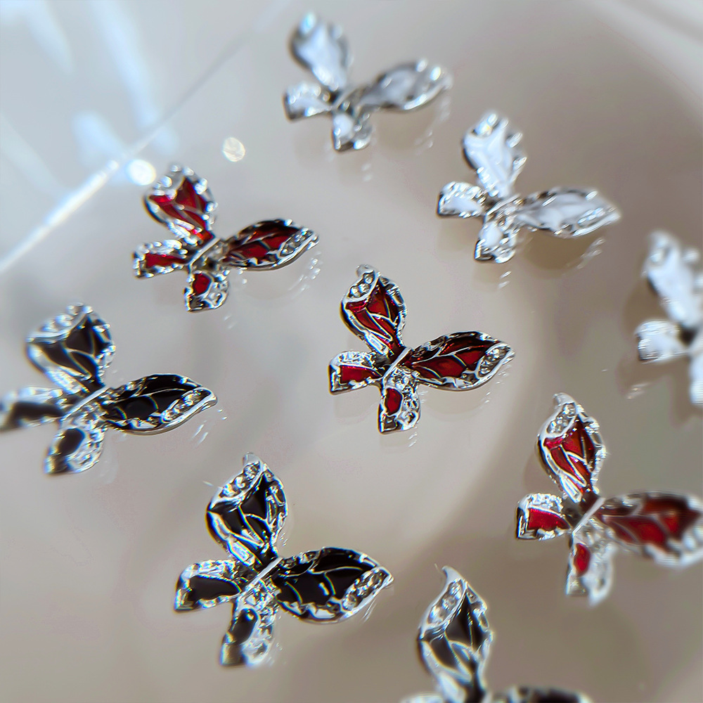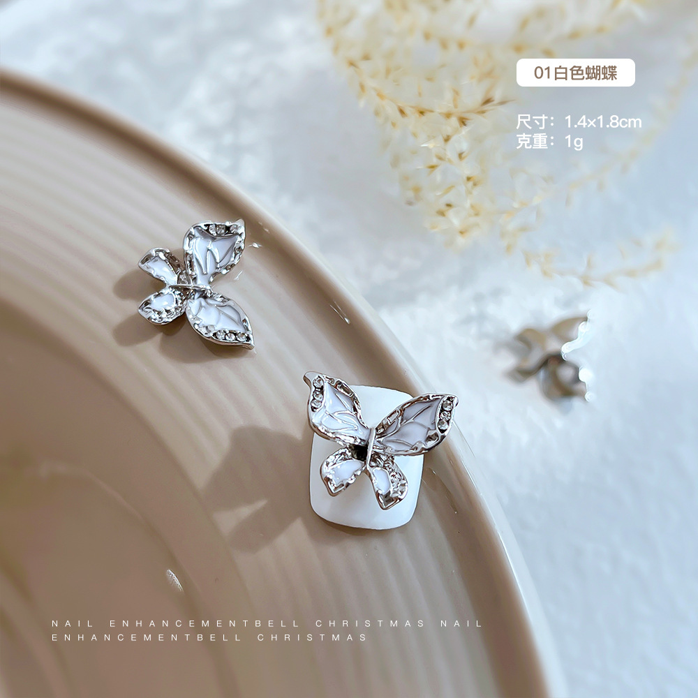 새로운 나비 네일 아트 보석 스테레오 합금 실버 색상 나비 날개 금속 네일 장식품 드릴 도매