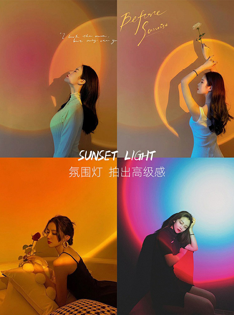 국경 간 창조적 인 라이브 사진 조명 분위기 빛 인터넷 붉은 일몰 분위기 프로젝션 램프스토어 가기