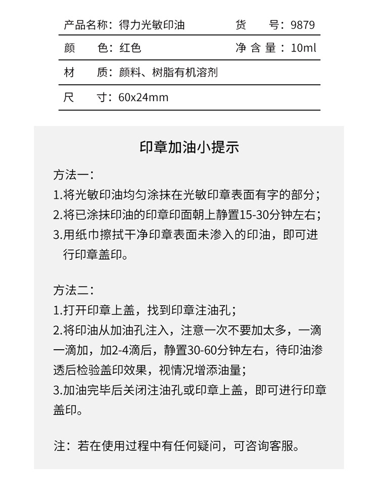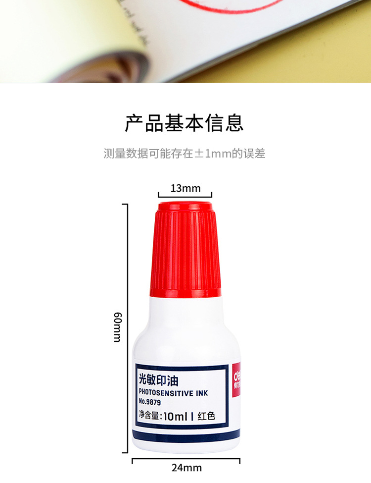 델리 10ml 파이낸셜 씰 감광성 씰 오일 레드 블루 씰 오일 사무용품 잉크 9879스토어 가기