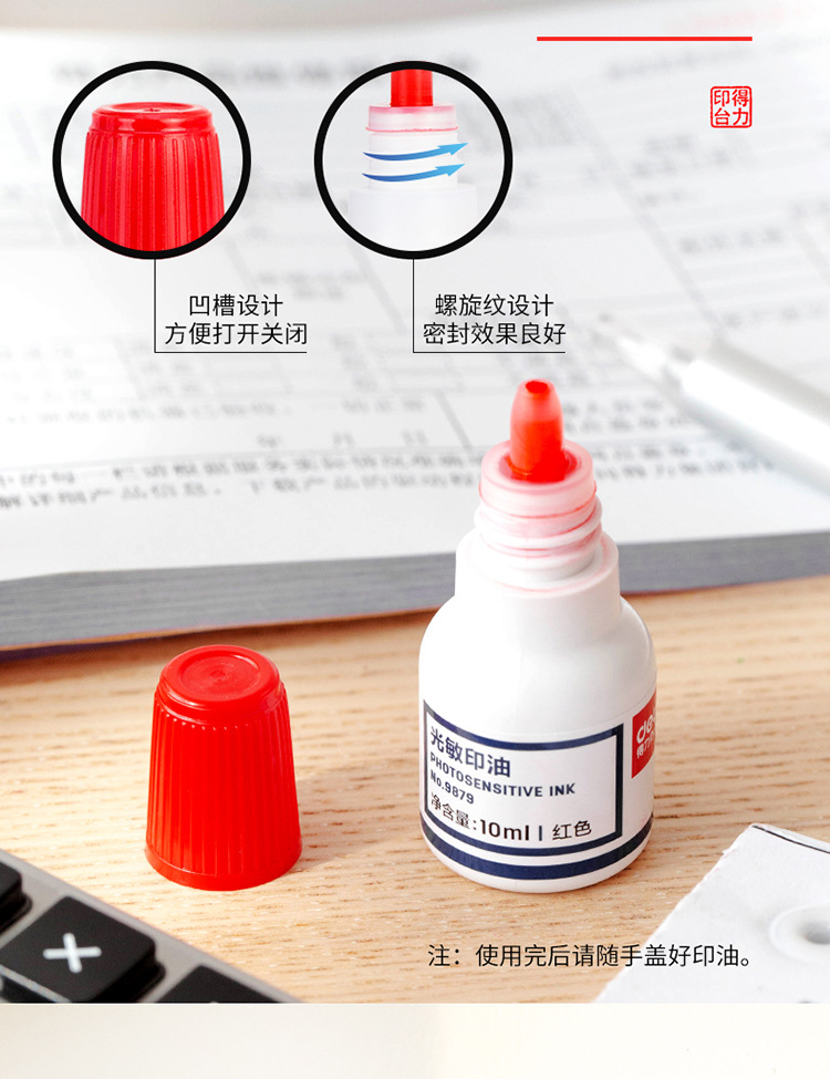 델리 10ml 파이낸셜 씰 감광성 씰 오일 레드 블루 씰 오일 사무용품 잉크 9879