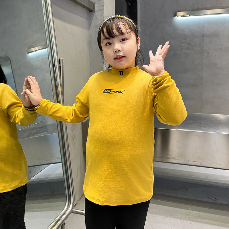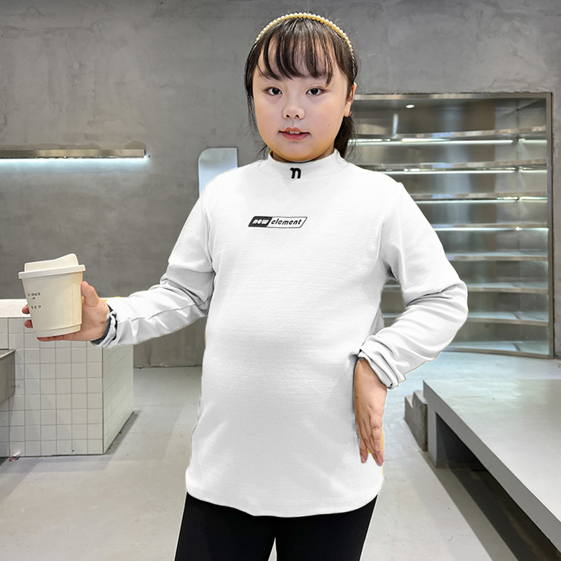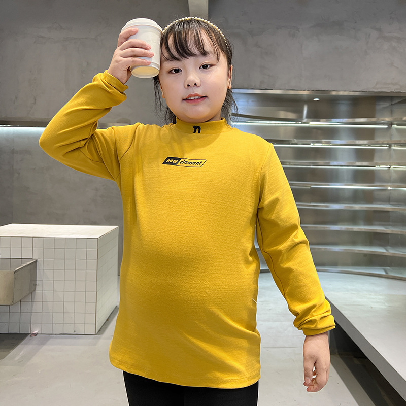 뚱뚱한 소녀의 긴팔 베이스 셔츠 어린이 가을과 겨울 중간 두께의 긴팔 티셔츠 뚱뚱한 소녀의 플러스 사이즈 특대형 따뜻한 탑 봄스토어 가기