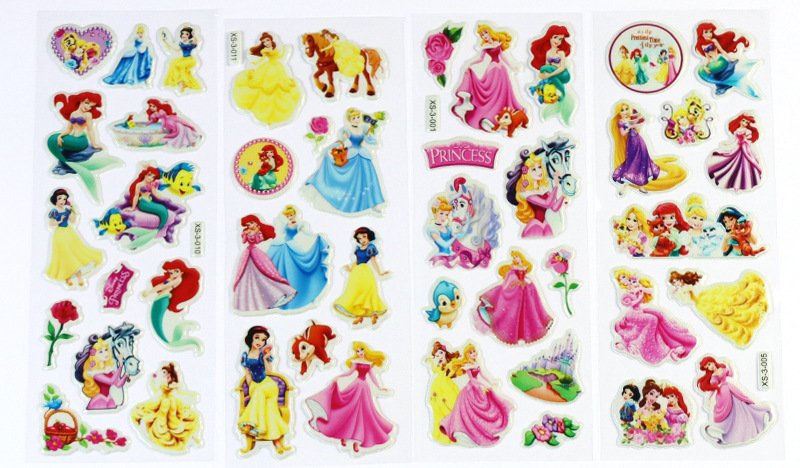 공주 소녀 버블 스티커 어린이 만화 백설 공주 스티커 스테레오 PVC 스티커 크로스 보더 생일 파티 선물스토어 가기