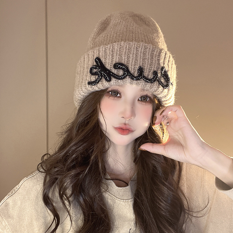 모자 2023 여성 니트 울 모자 가을과 겨울 모든 경기 큰 머리 둘레 느슨한 따뜻한 차가운 모자 얼굴 샤워 작은 모자스토어 가기