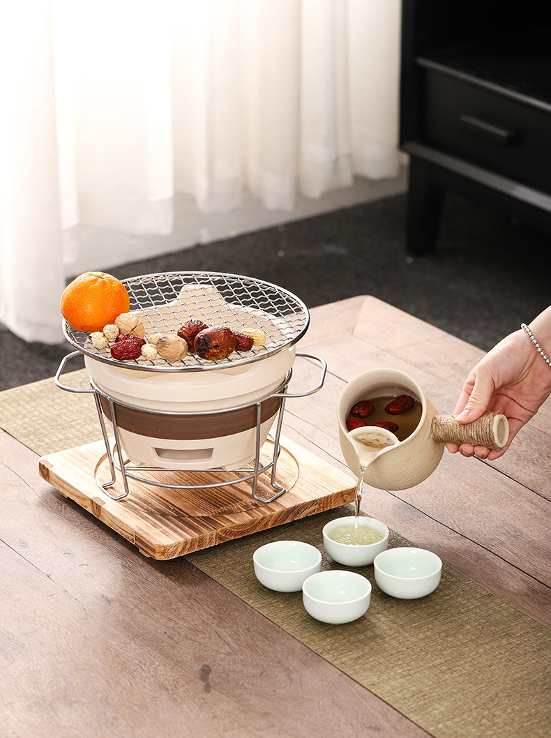 陶瓷围炉煮茶户外烧烤炉烧烤架简约便携式室内多功能碳烤炉烤盘
