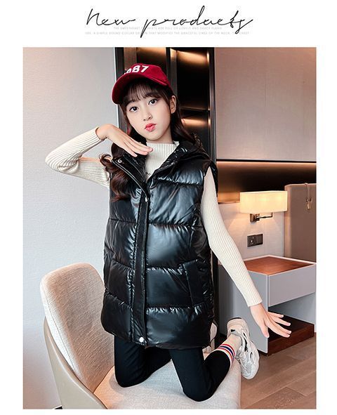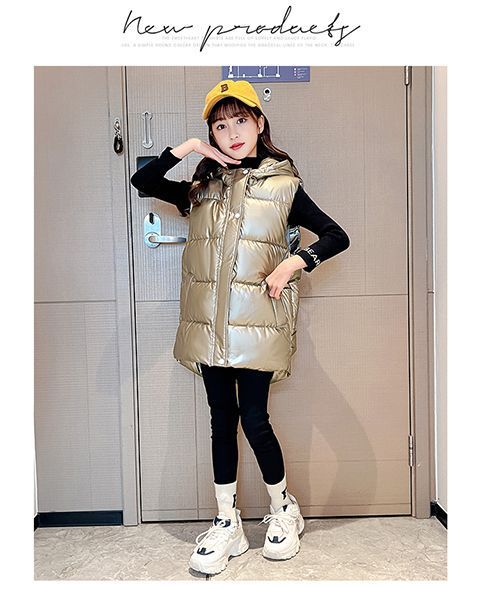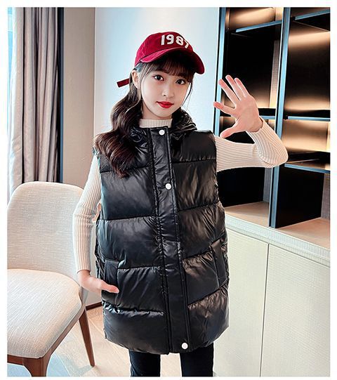 다운 코튼 조끼 코트 가을과 겨울 2023 새로운 스타일 서양 스타일 소녀 중간 및 큰 어린이 두꺼운 어린이 조끼 겉옷스토어 가기
