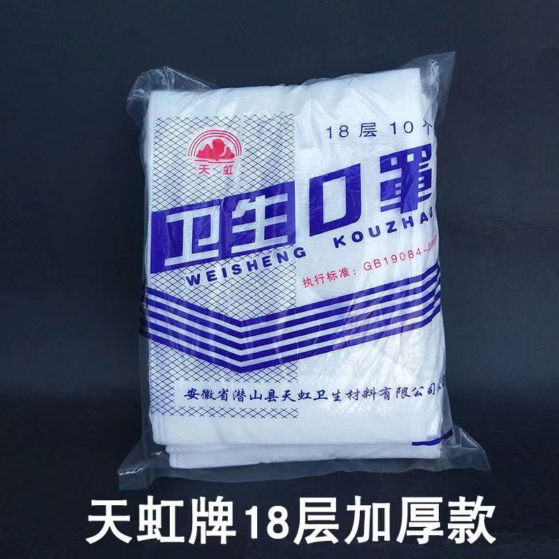 有16层、24层,由整张纱布折叠而成,纱布是加密的细沙布,手感比较柔软,这款是头戴式,独立包装,再10个一袋
