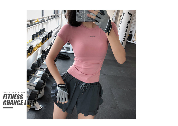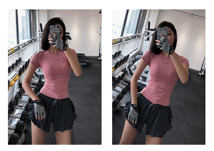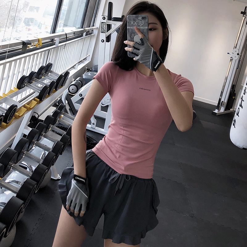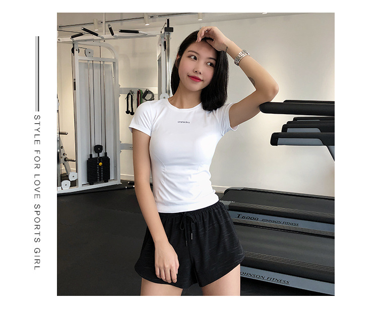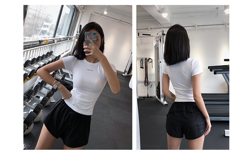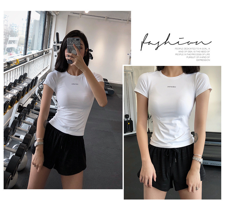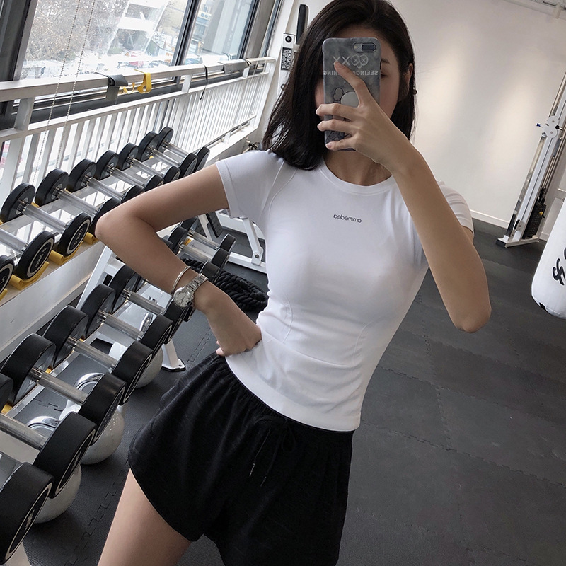 달리기 스포츠 피트니스 반팔 여성용 티셔츠 빠른 건조 캐주얼 통기성 새로운 요가 옷 짧은 꽉 끼는 탑