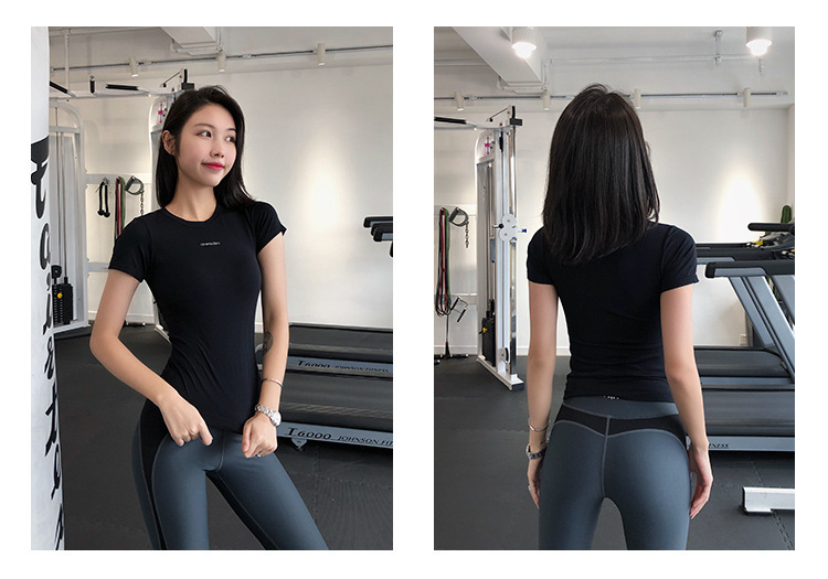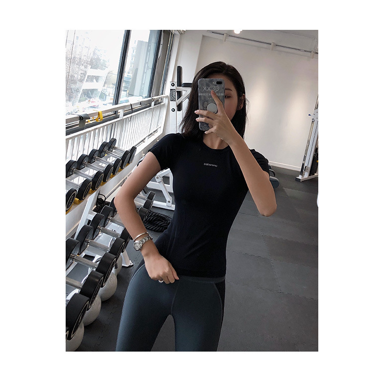 달리기 스포츠 피트니스 반팔 여성용 티셔츠 빠른 건조 캐주얼 통기성 새로운 요가 옷 짧은 꽉 끼는 탑스토어 가기