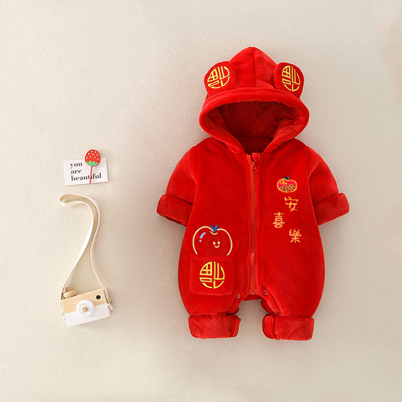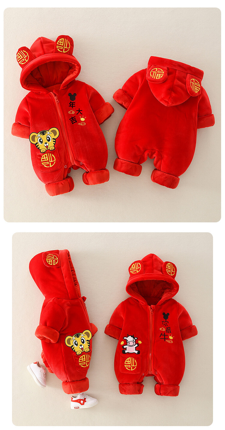 아기 새 해 옷 겨울 기모 면 따뜻한 외출 행복 한 새 해 레드 행복 한 새 해 소년 옷