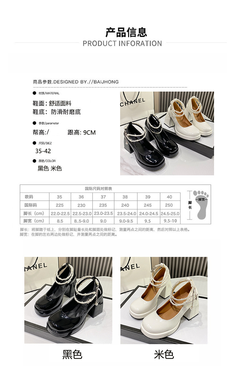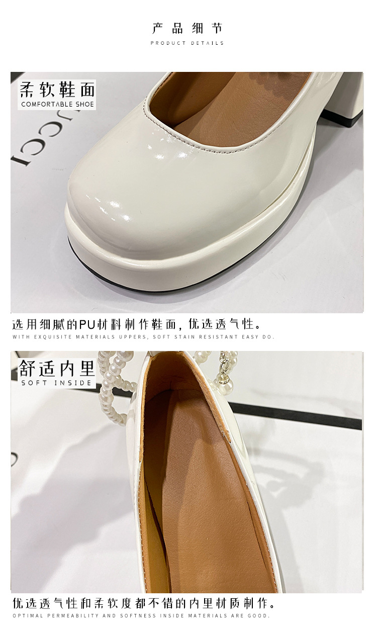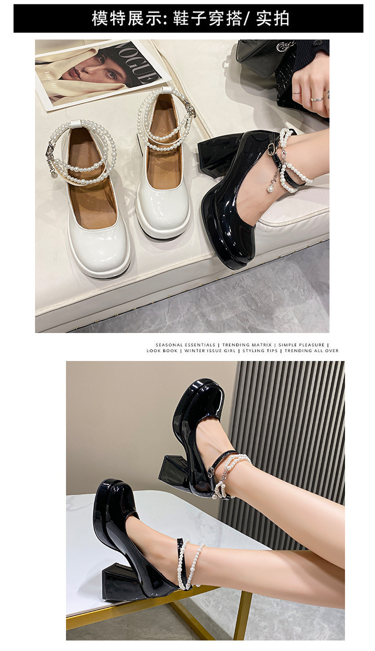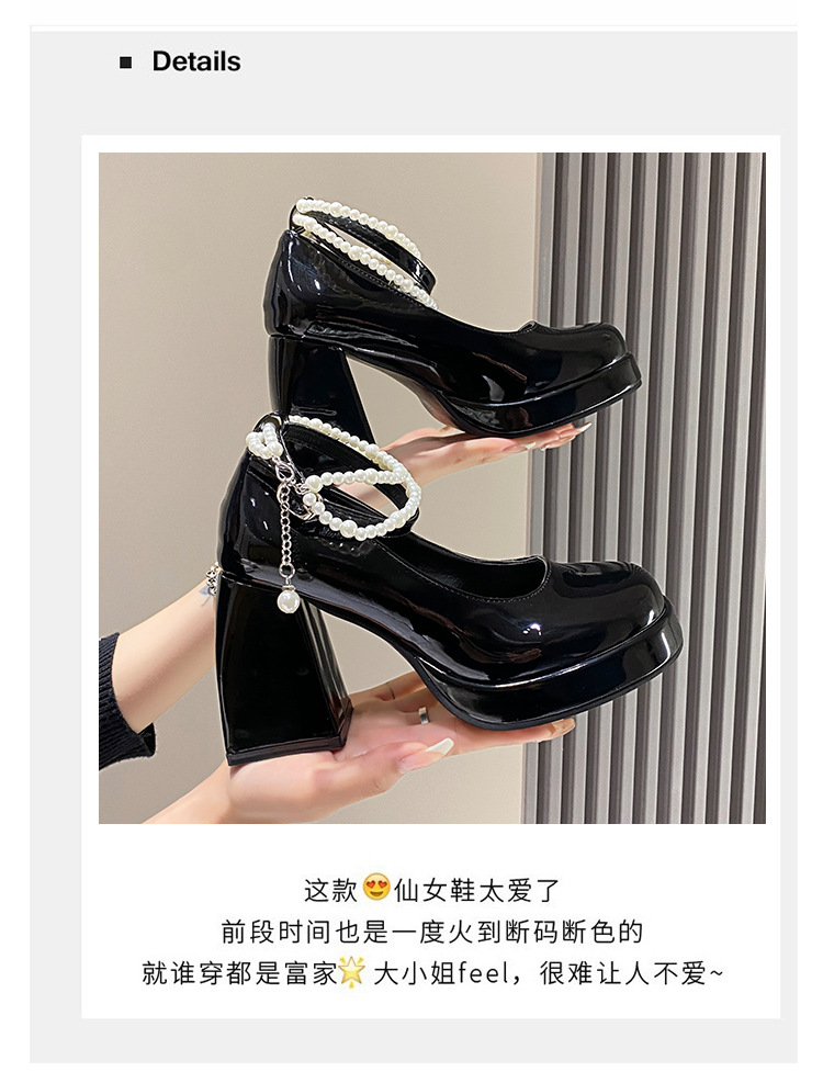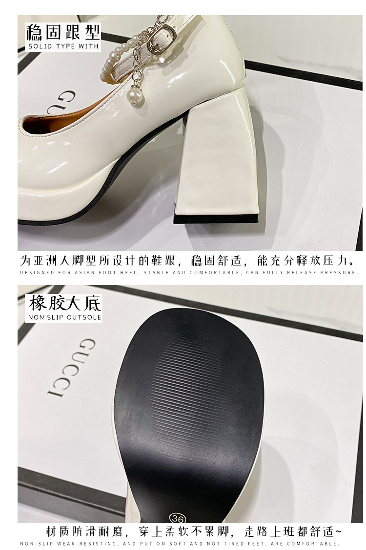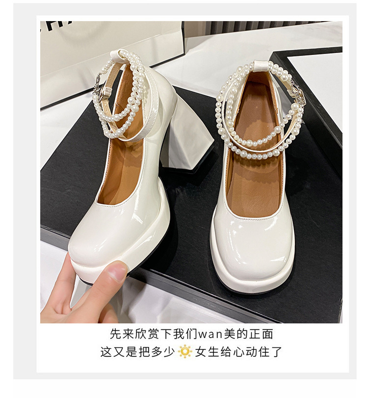프랑스 스타일 복고풍 진주 메리 제인 신발 여성용 하이힐 2023 새로운 스타일 여름 두꺼운 밑창 올 매치 청키 힐 영국 가죽 신발스토어 가기