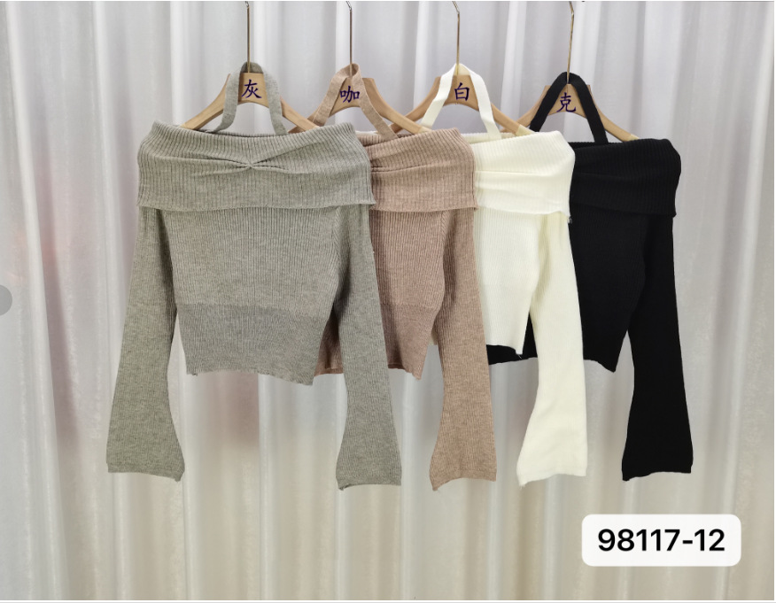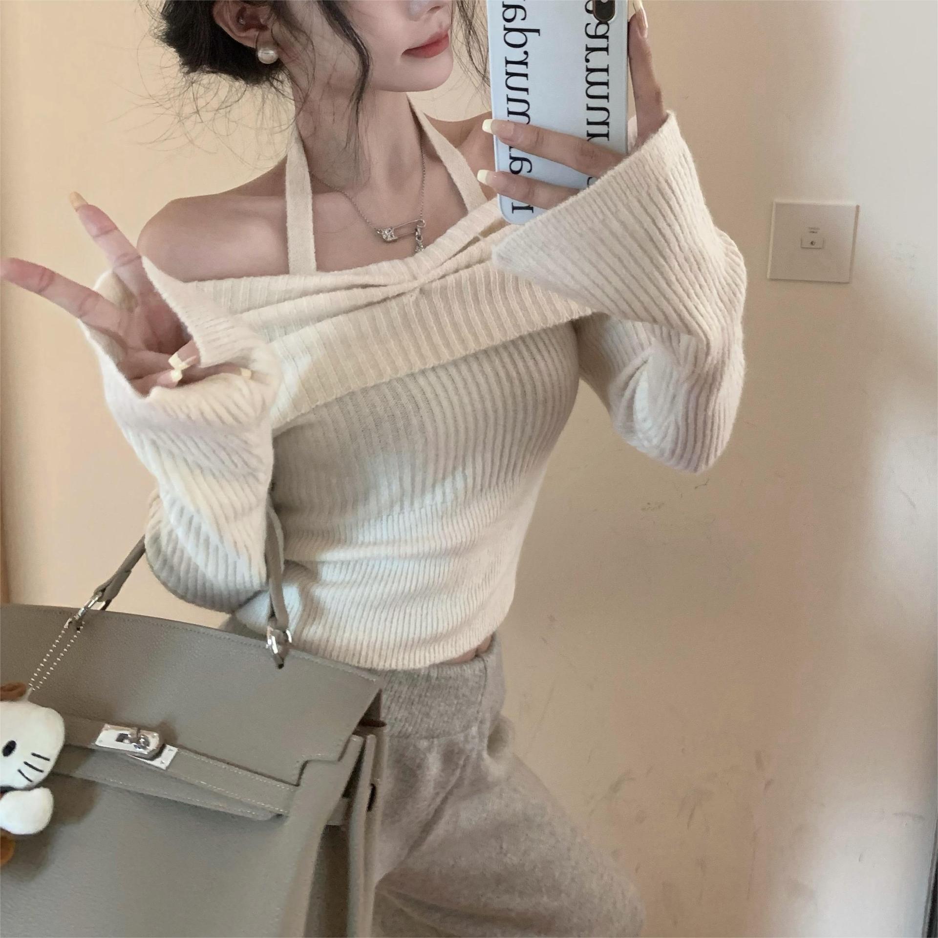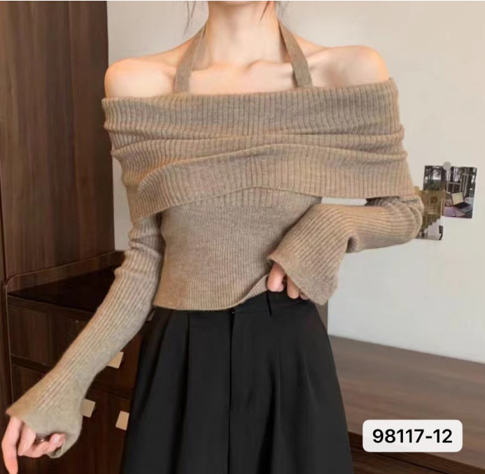 가을과 겨울 새로운 다랑 니트 숄더 넥 긴팔 슬림핏 스파이스 걸스 퓨어 욕망 여성용 스웨터 탑스토어 가기