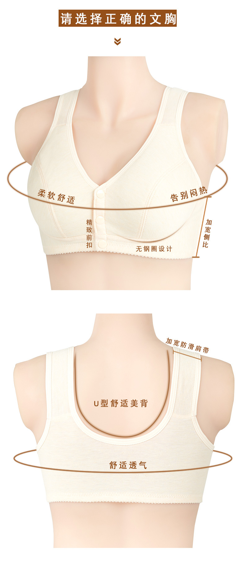중년 및 노인 브래지어 앞 버클 속옷 여성을위한 강철 링 조끼 타입 광택 속옷없이 새로운 숙녀 부드러운 면 플러스 사이즈스토어 가기