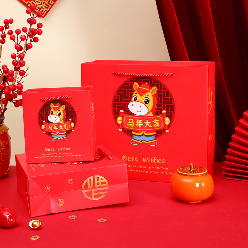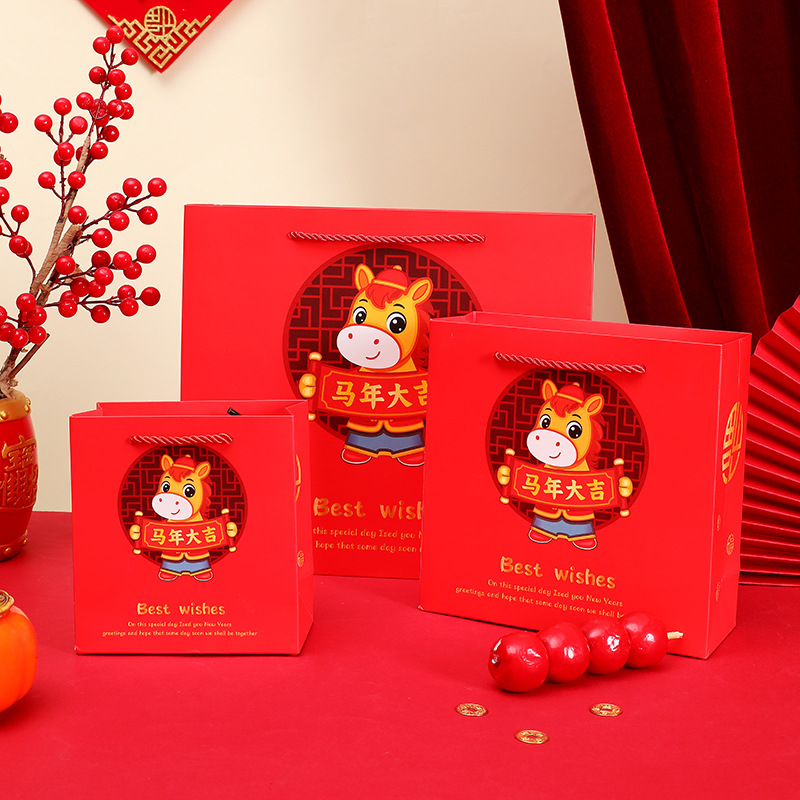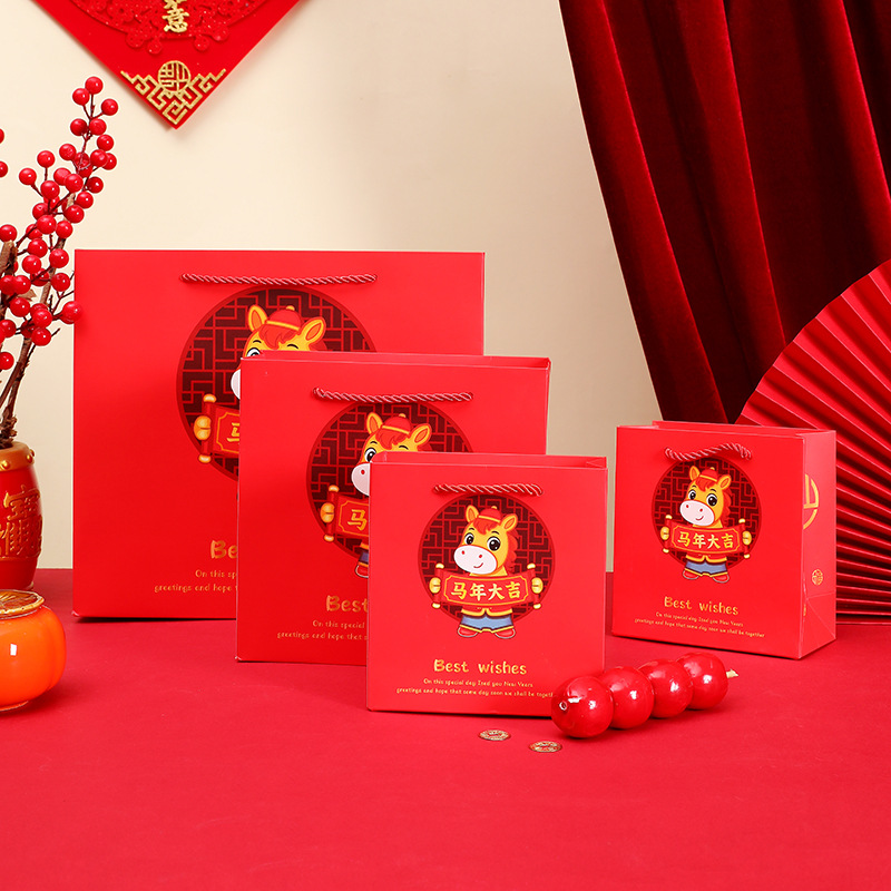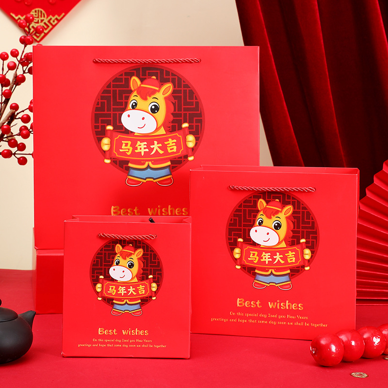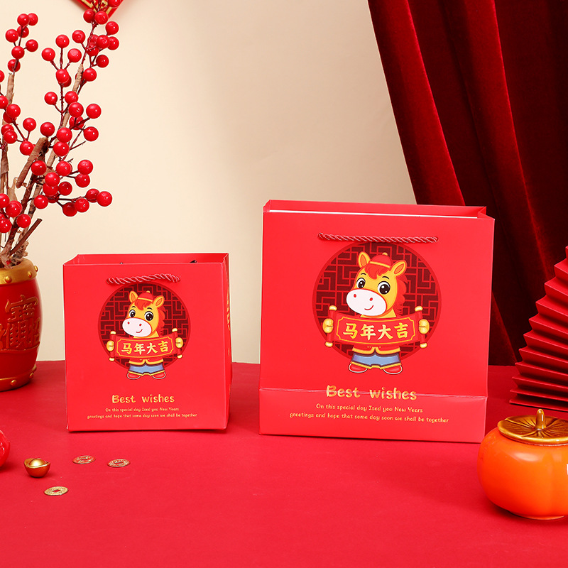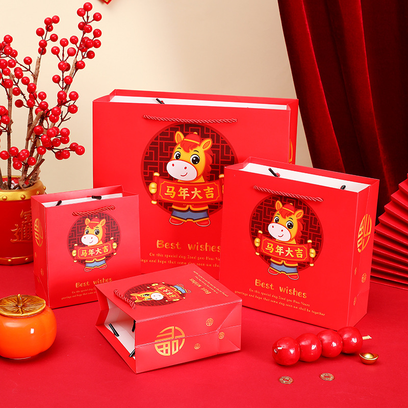 드래곤 년 만화 선물 가방 새해 선물 가방 신년 상품 포장 가방 손 선물 가방 의류 핸드백 사탕 가방 레드
