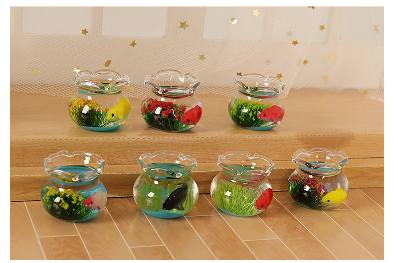 시뮬레이션 소형 미니 유리 모델 작은 어항 창조적 인 절묘한 수제 DIY 인형 집 장면 데스크탑 장식품
