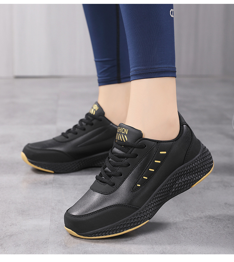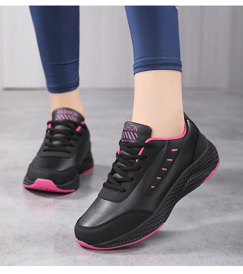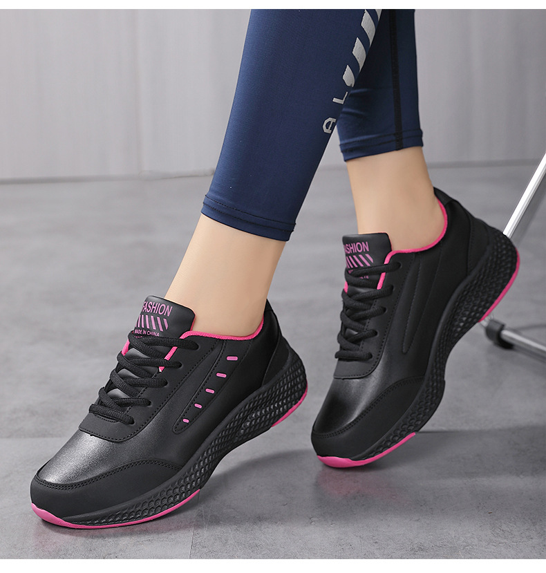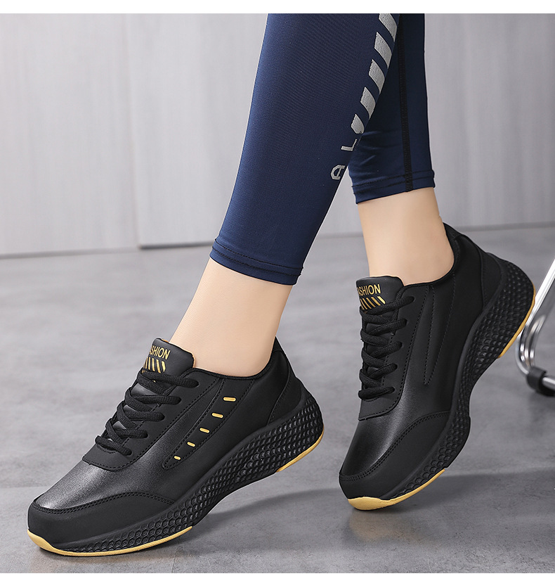 봄과 가을 크로스 보더 새로운 가죽 캐주얼 운동화 여성 신발 라운드 발가락 플랫 힐 패션 캐주얼 여성 신발 런닝 신발스토어 가기