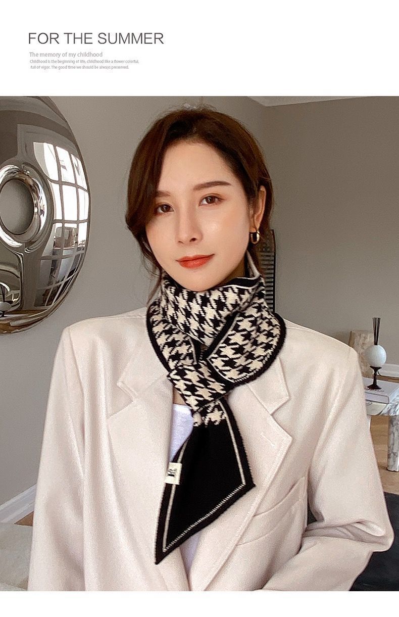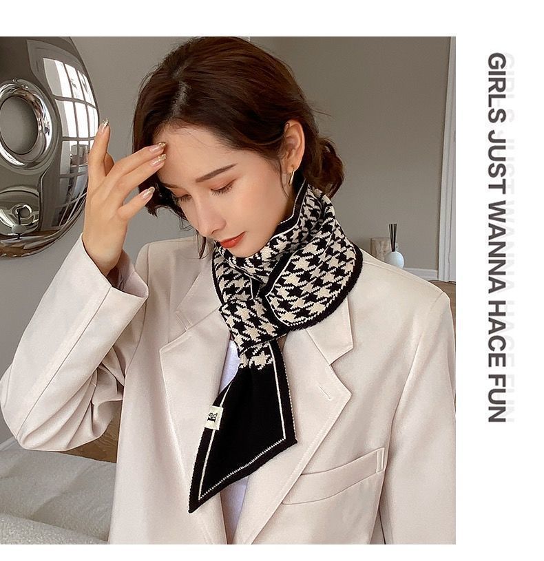 새로운 Houndstooth 작은 스카프 여성의 가을과 겨울 한국 스타일 따뜻한 인터넷 인기있는 외국 스타일 목 보호 우아한 모든 일치 유행 스카프