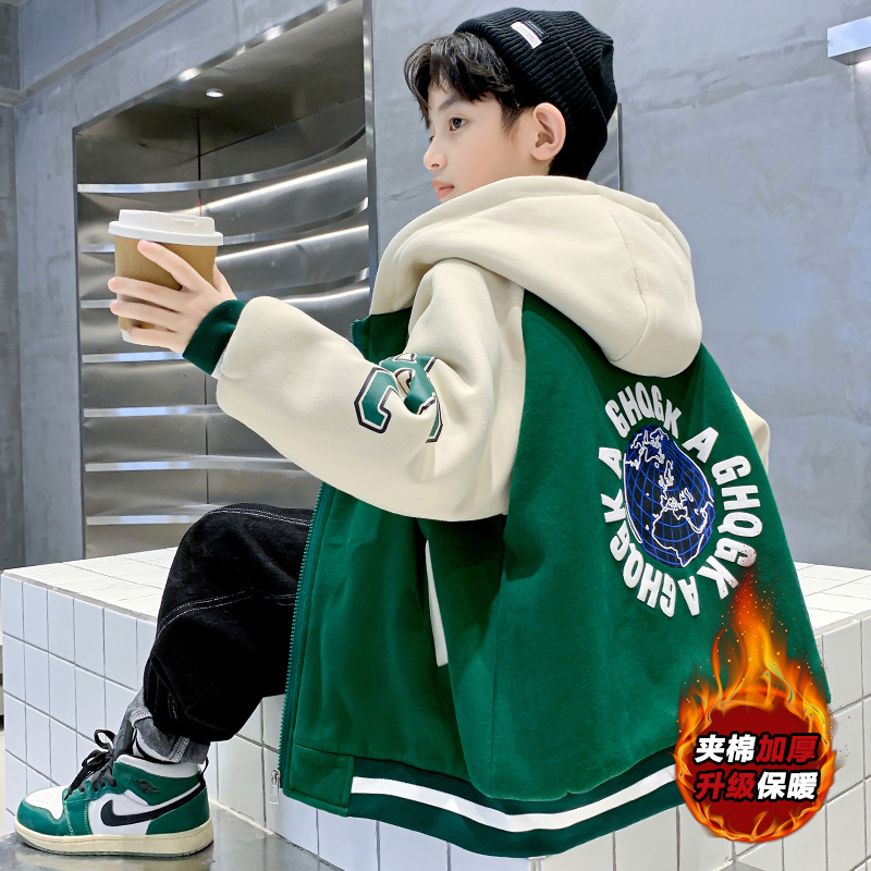 아동 의류 소년 가을 코트 봄 가을 겨울 2023 새로운 두꺼운 옷 소년 가을 큰 아이 야구 옷