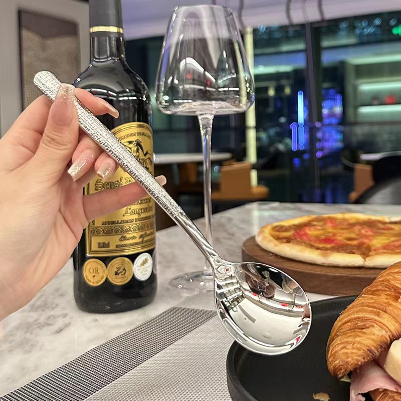 스테인레스 스틸 스푼 한국 망치 패턴 라운드 스푼 서양 레스토랑 긴 손잡이 스푼 가정용 스푼 디저트 스푼 스푼 스푼 스푼스토어 가기