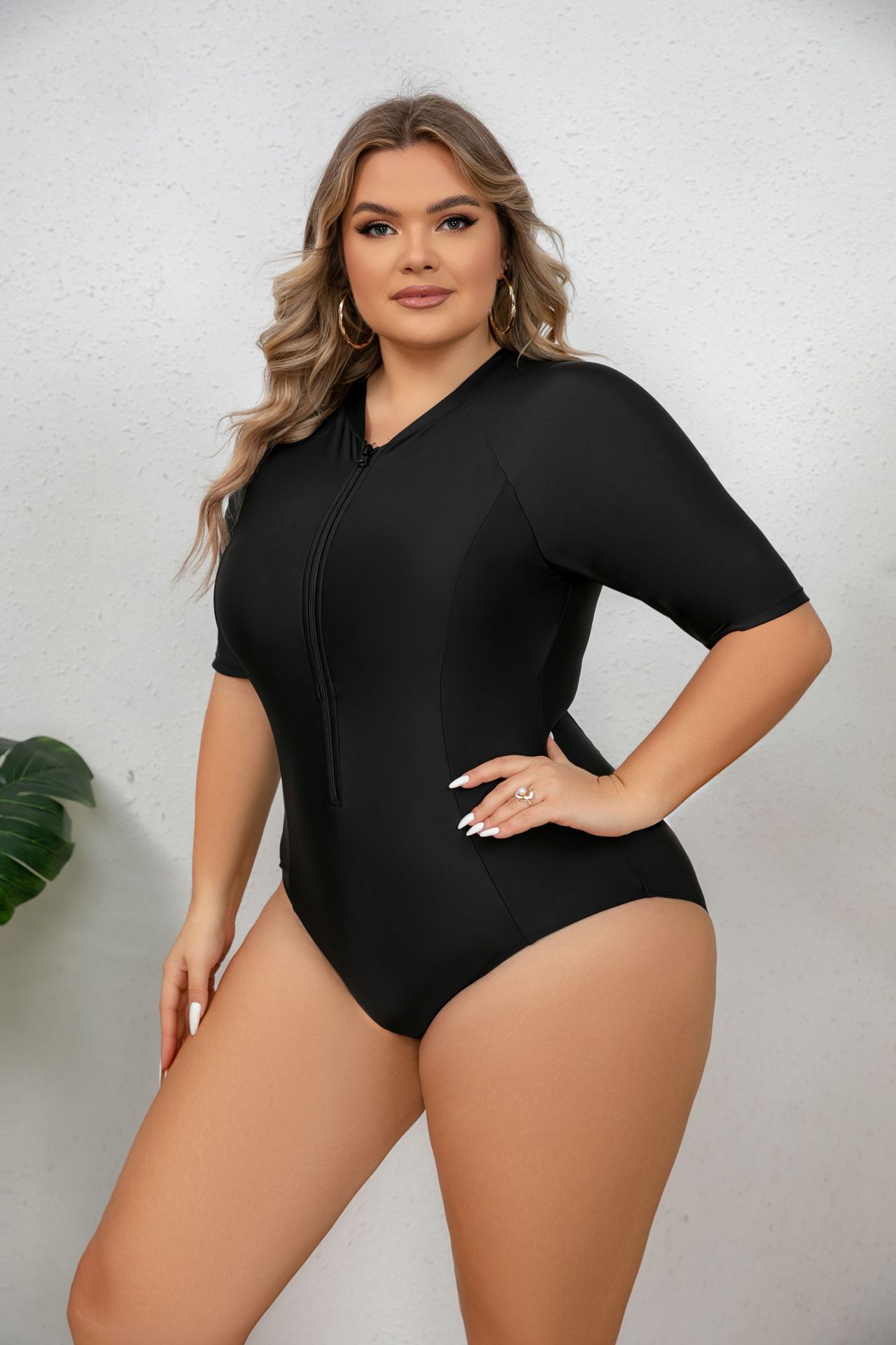 플러스 사이즈 원피스 지퍼 스포츠 수영복 여성 반팔 서핑 수영복 유럽과 미국 서핑 세트 삼각형 해파리 세트 스노클링 세트