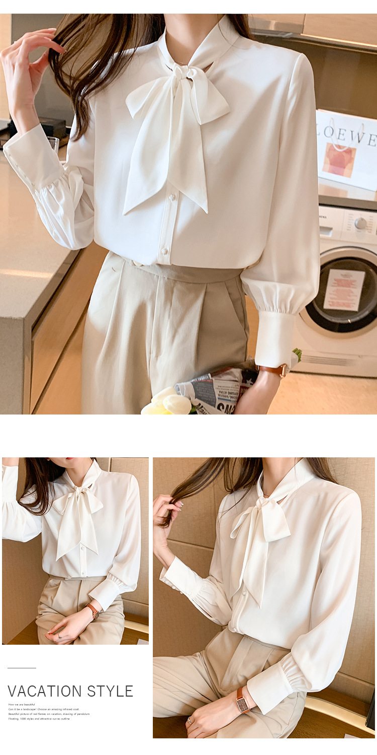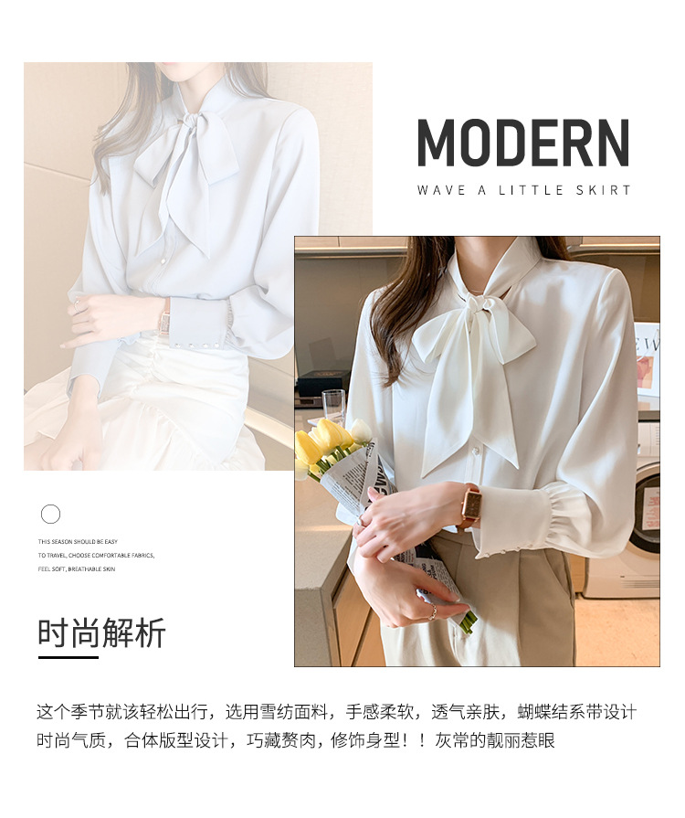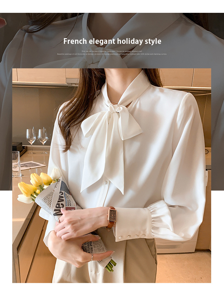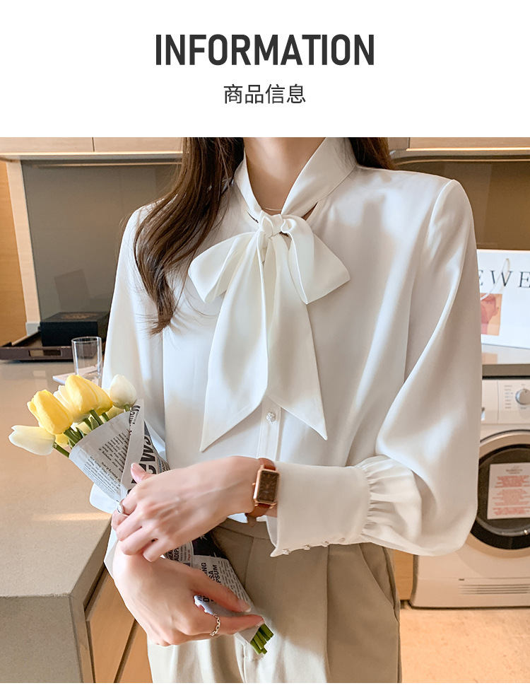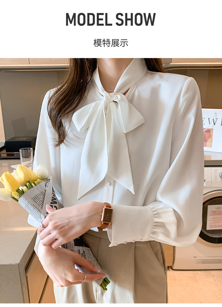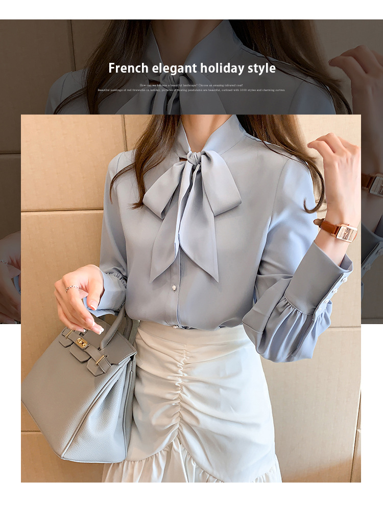 실제 촬영 봄 가을 신상 리본 넥타이 디자인 긴팔 셔츠 이너웨어 탑