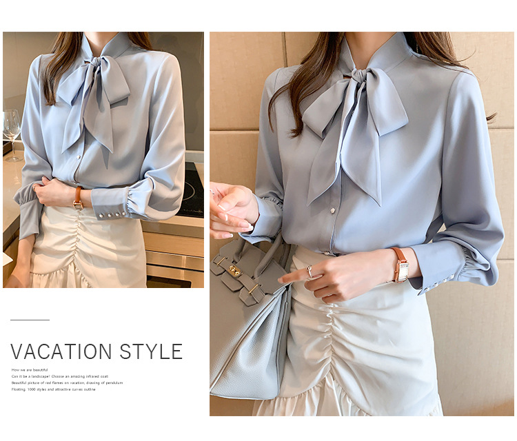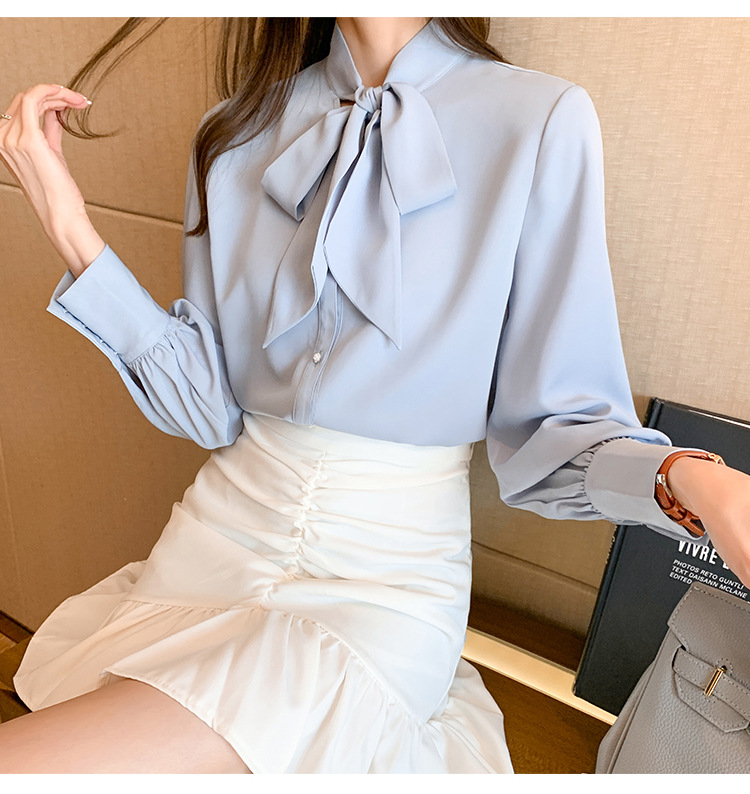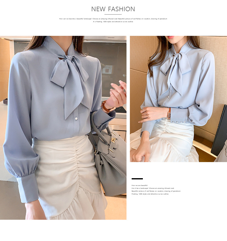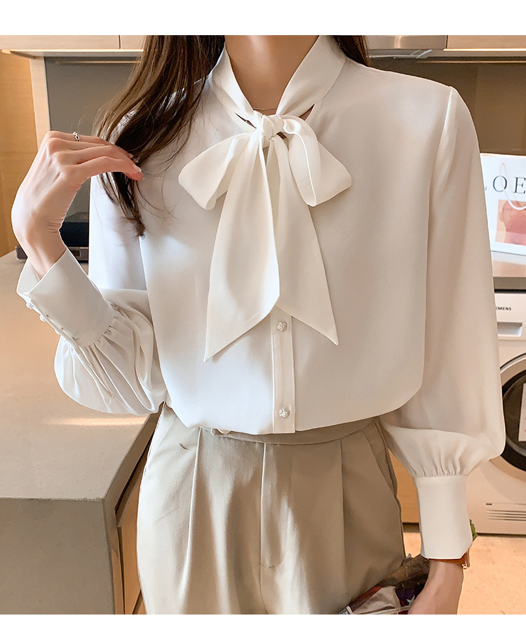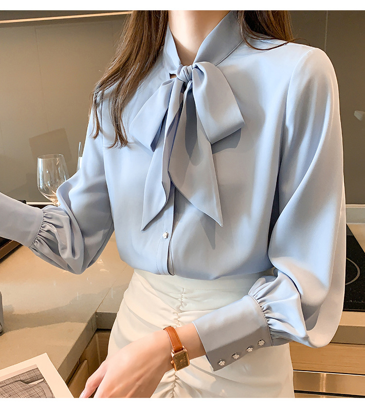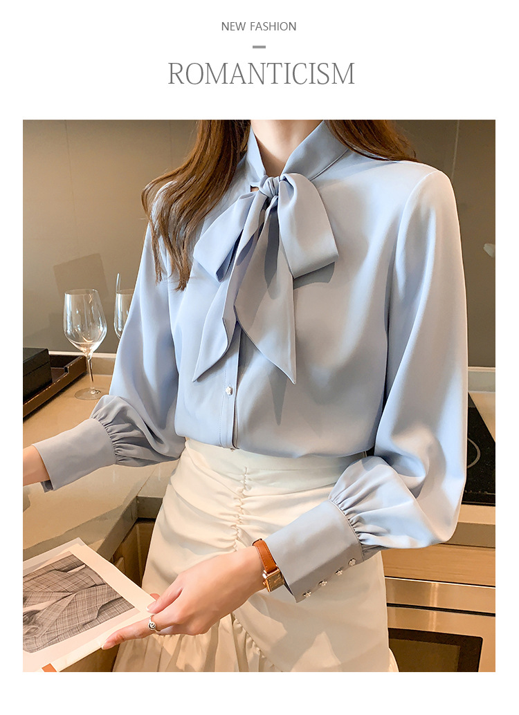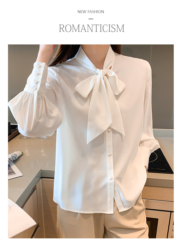 실제 촬영 봄 가을 신상 리본 넥타이 디자인 긴팔 셔츠 이너웨어 탑