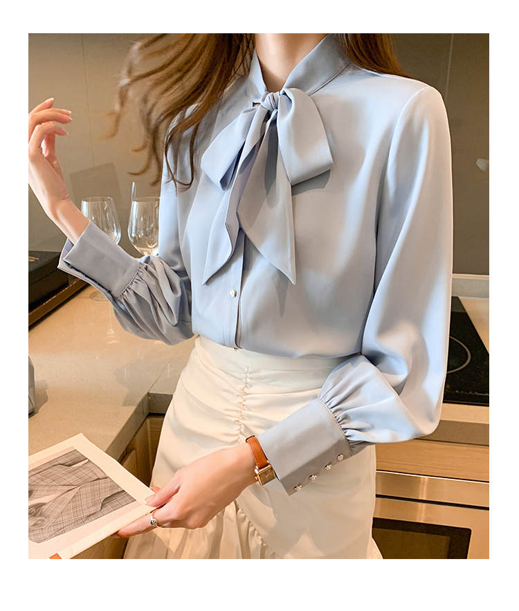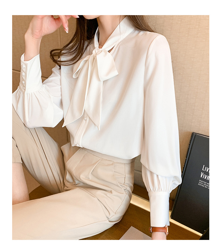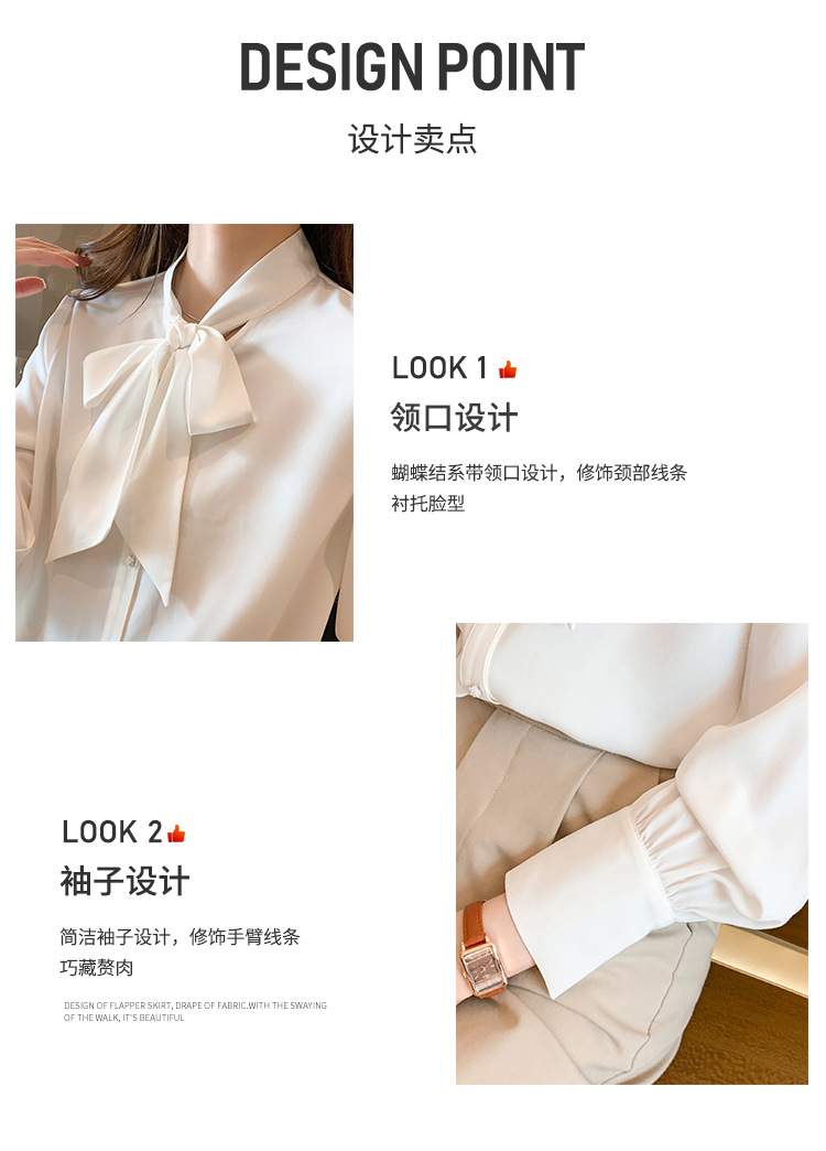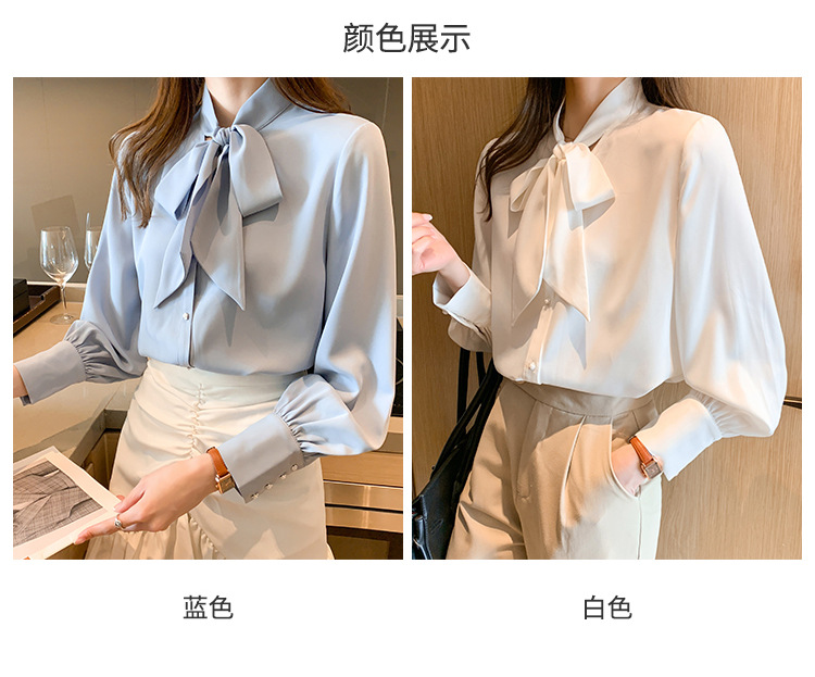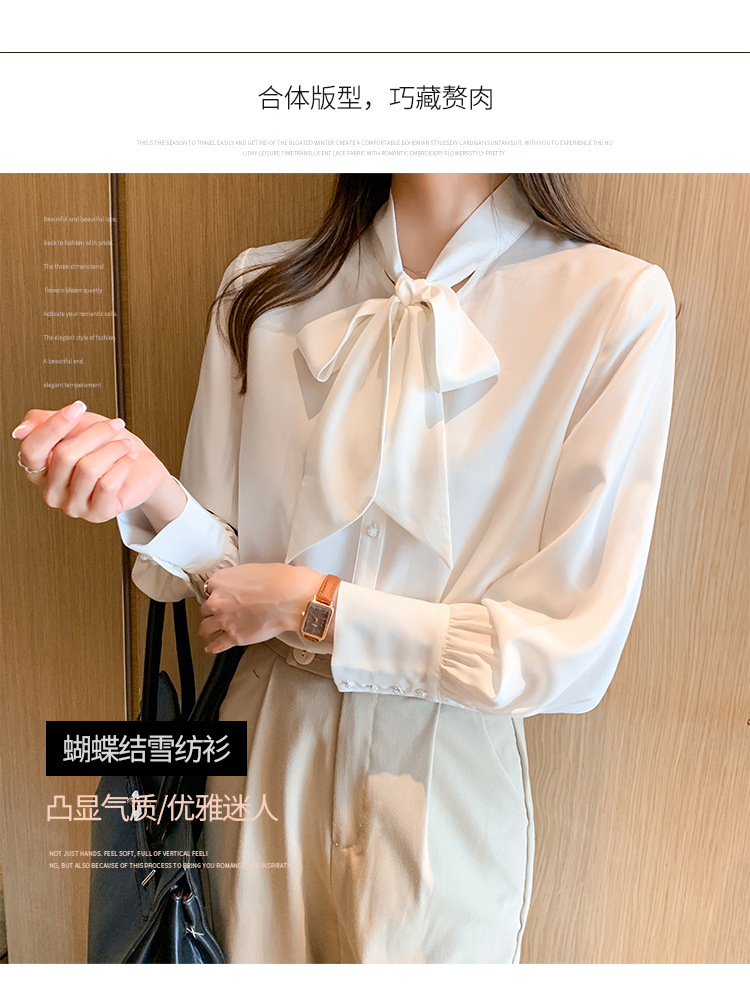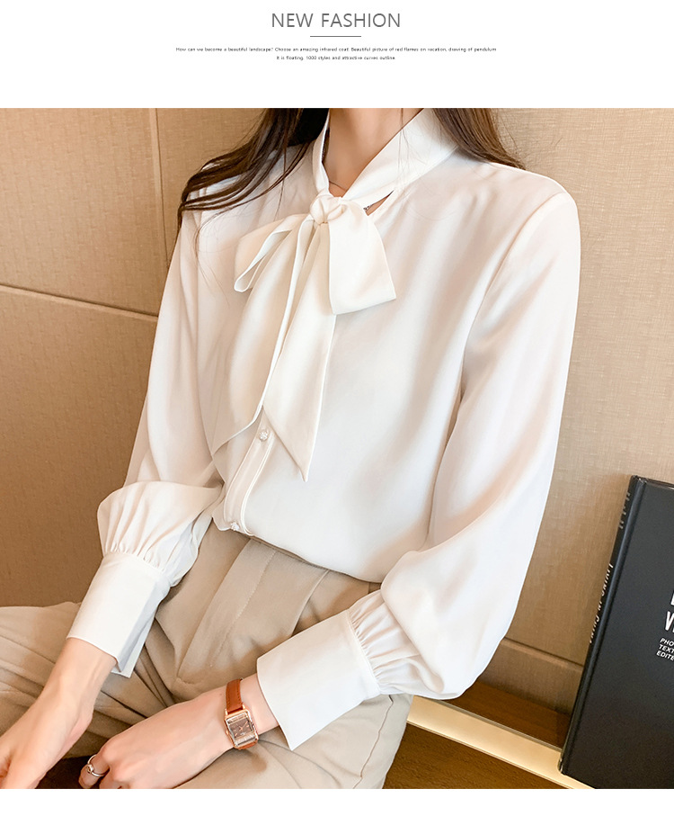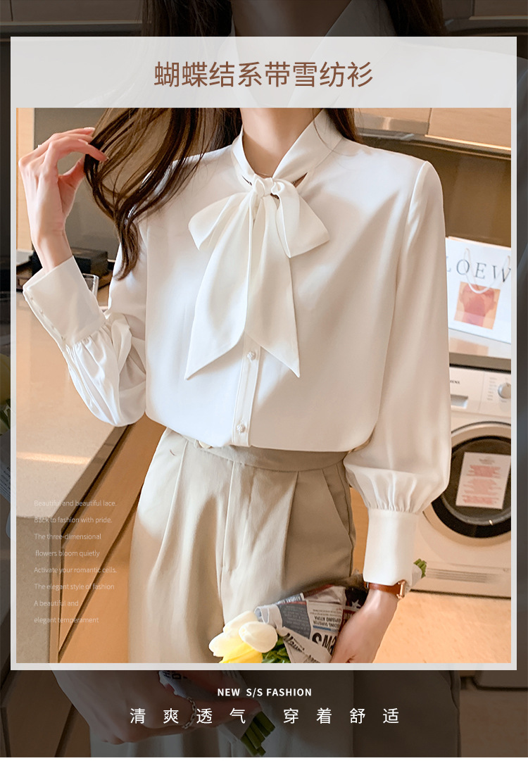 실제 촬영 봄 가을 신상 리본 넥타이 디자인 긴팔 셔츠 이너웨어 탑