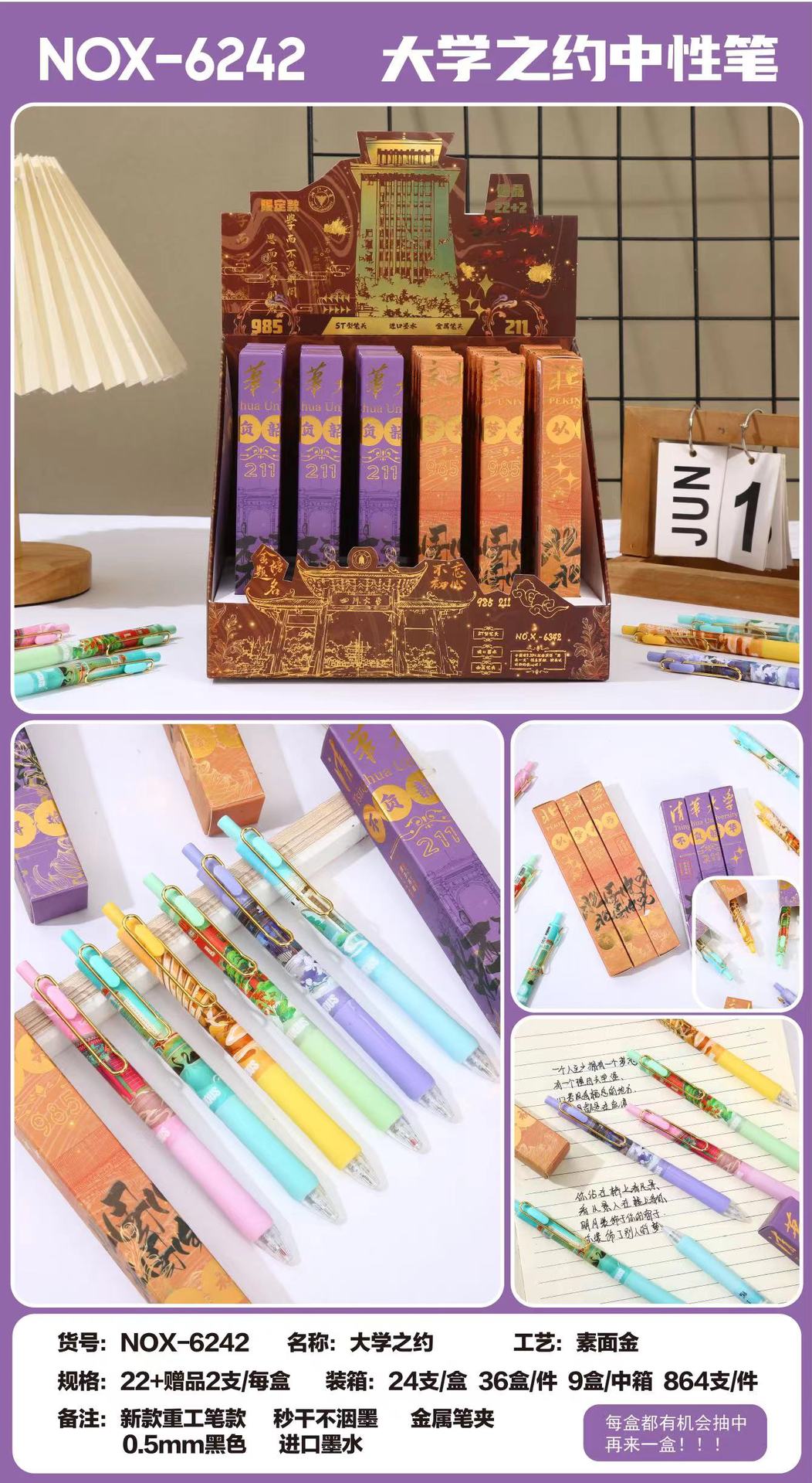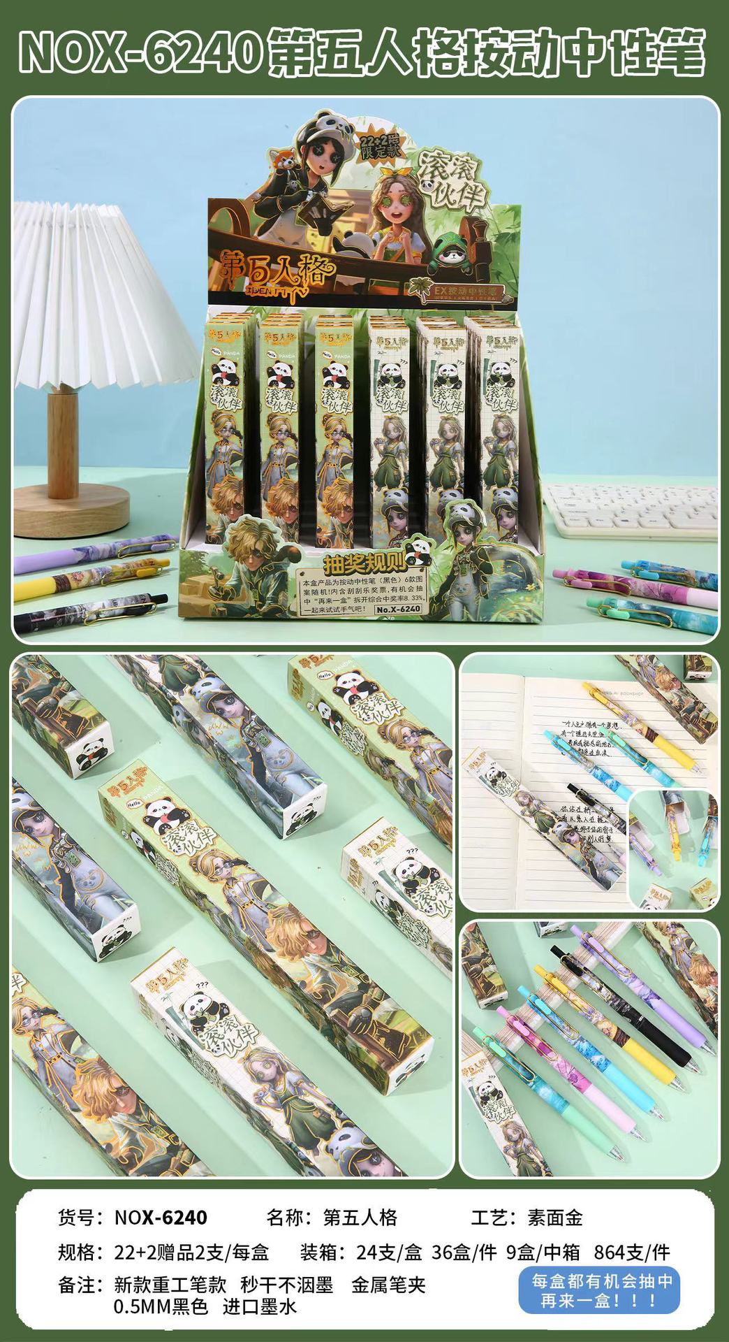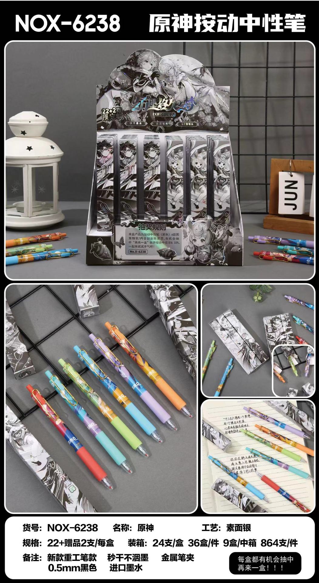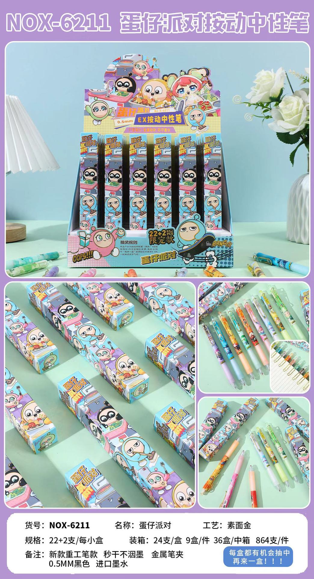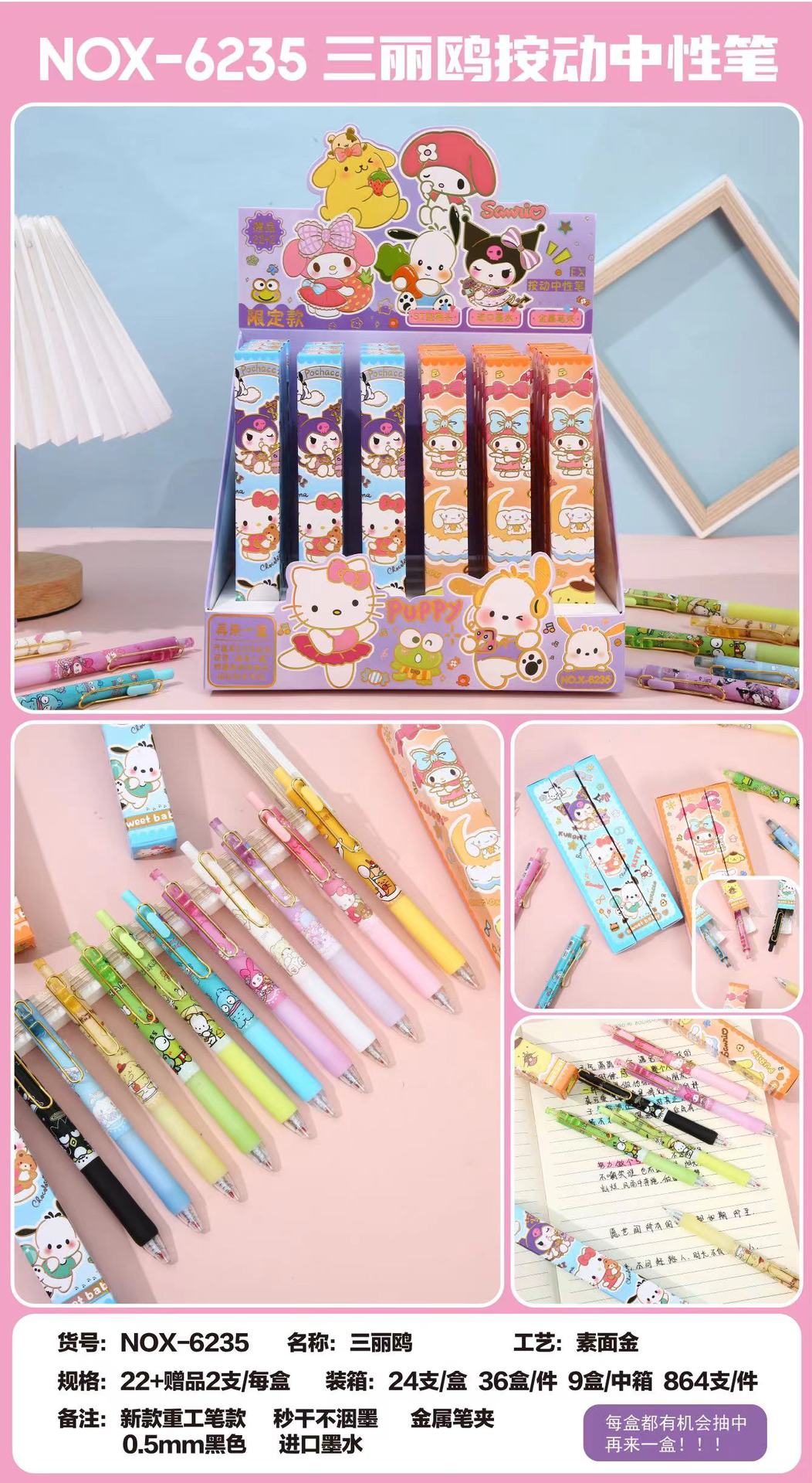本盒产品为中性笔组合,款式多样,购买获得惊喜!内含奖票,有机会抽中再来一盒奖票,拆开就有机会获得奖励一起来试试手气吧!