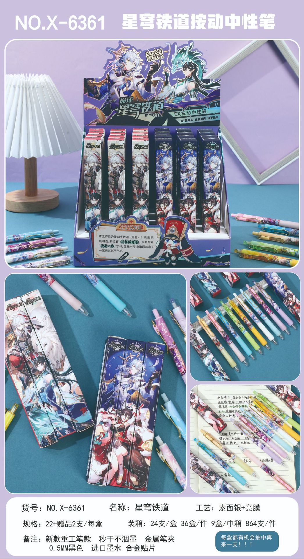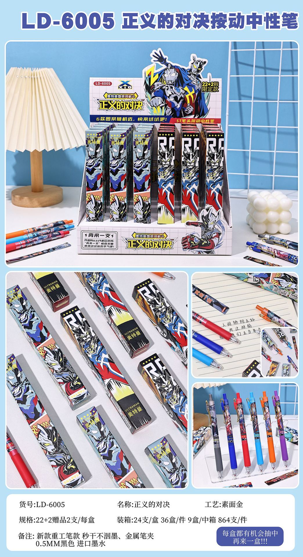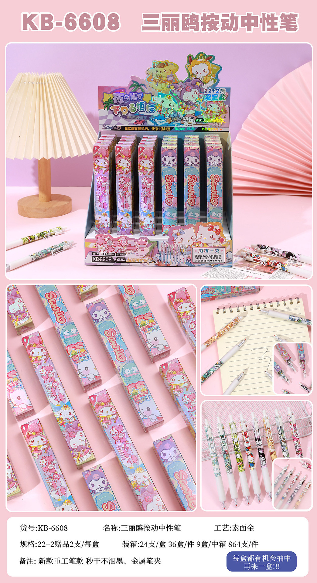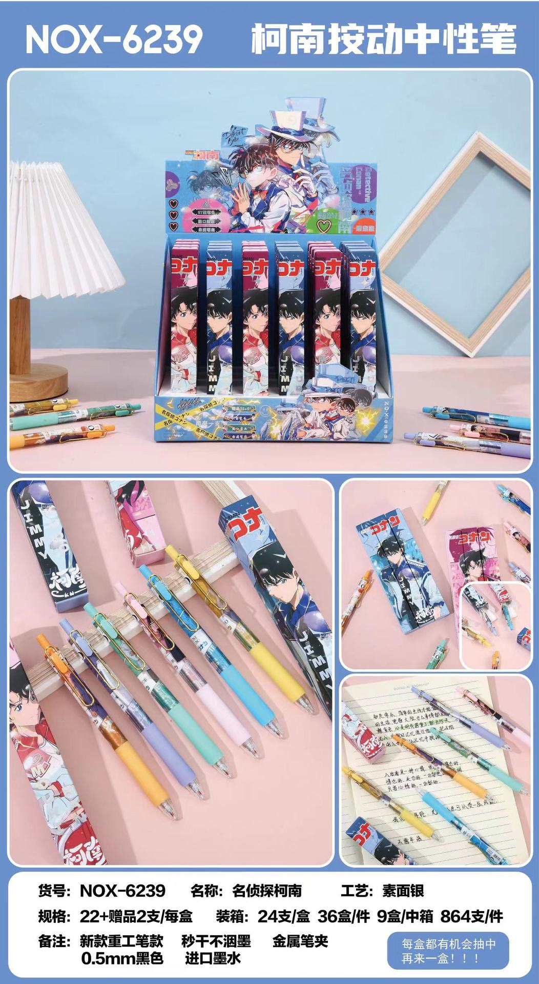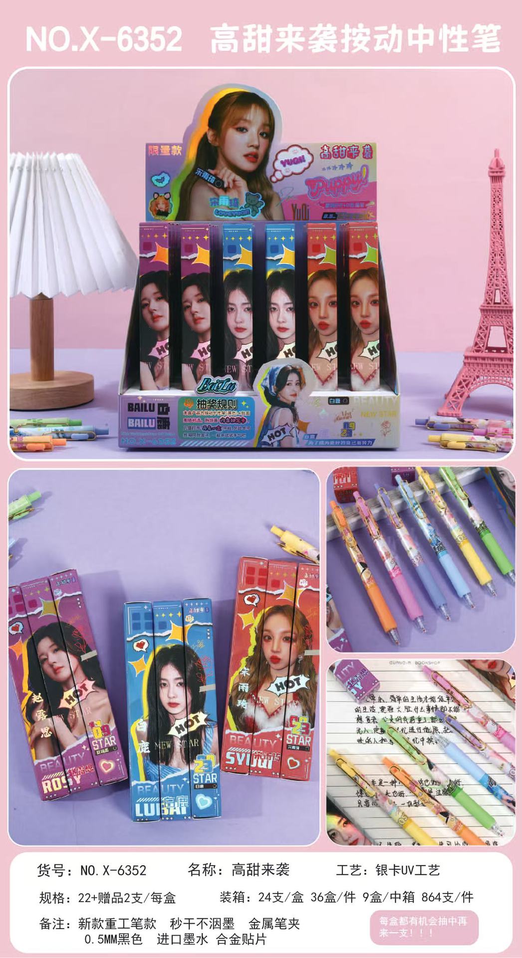 本盒产品为中性笔组合,款式多样,购买获得惊喜!内含奖票,有机会抽中再来一盒奖票,拆开就有机会获得奖励一起来试试手气吧!