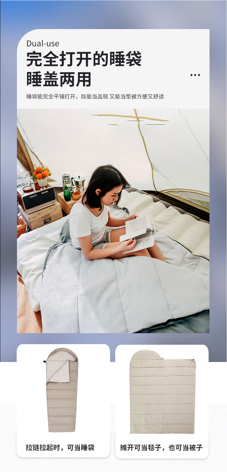야외 성인 점심 휴식 사다리꼴 다기능 슬리핑 백 더러운 봉투 접합 더블 슬리핑 백 가을과 겨울 두꺼운 캠핑스토어 가기
