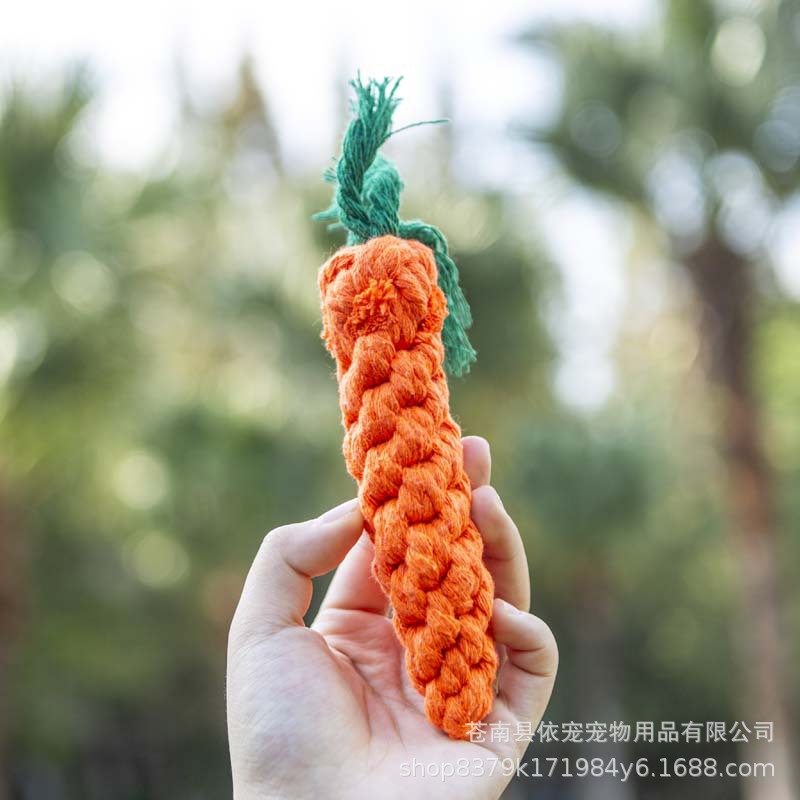 개 장난감 당근 물린 로프 애완 동물 장난감 용품 개 물린 방지 짠 면 로프 어금니 재고 매듭 도매