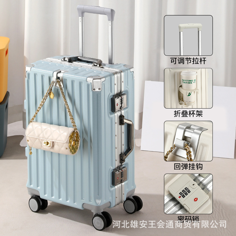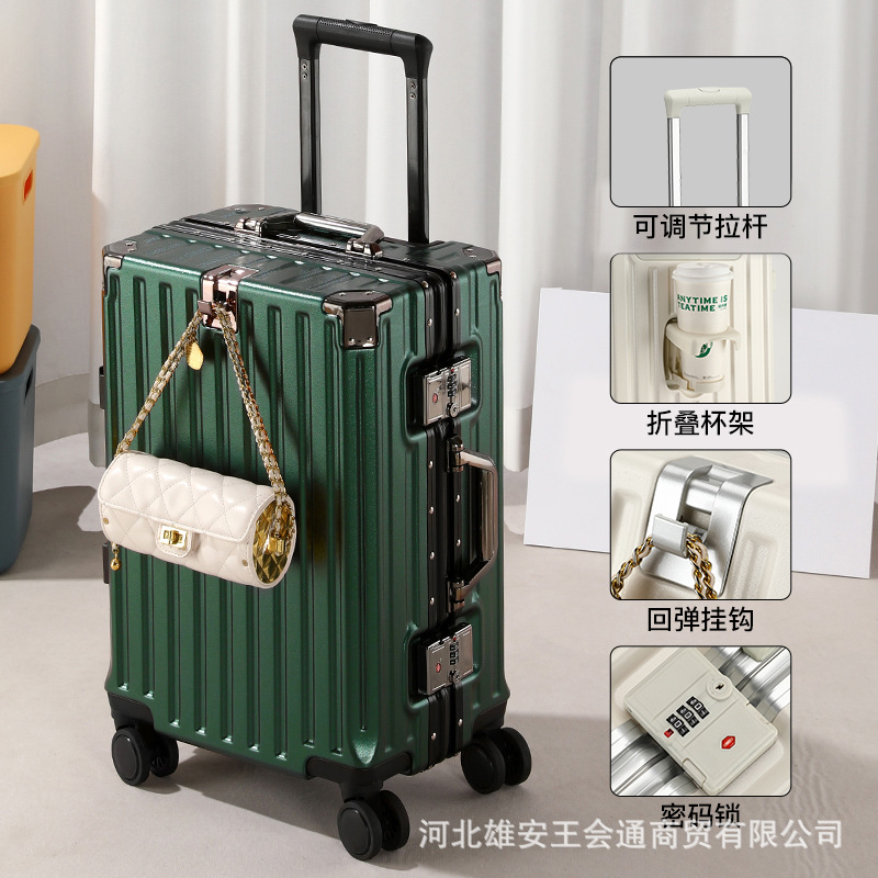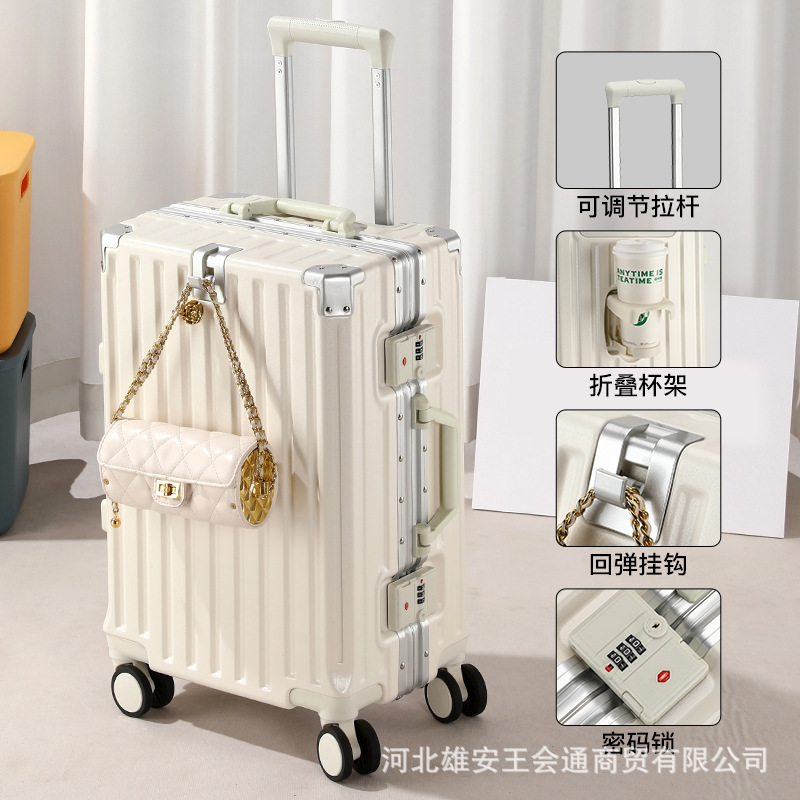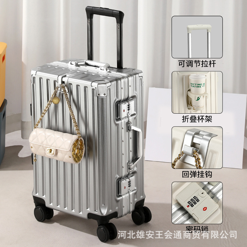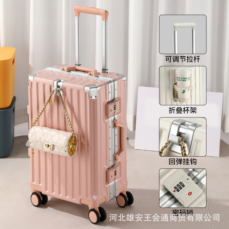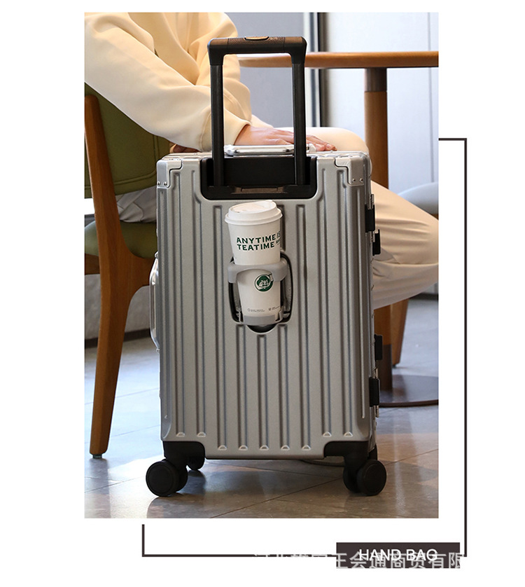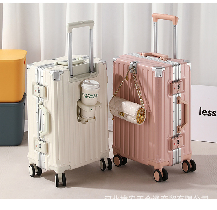 수화물 유니버설 휠 알루미늄 프레임 트롤리 케이스 여성 학생 20 인치 컵 홀더 여행 가방 탑승 암호 상자 도매 28 인치스토어 가기