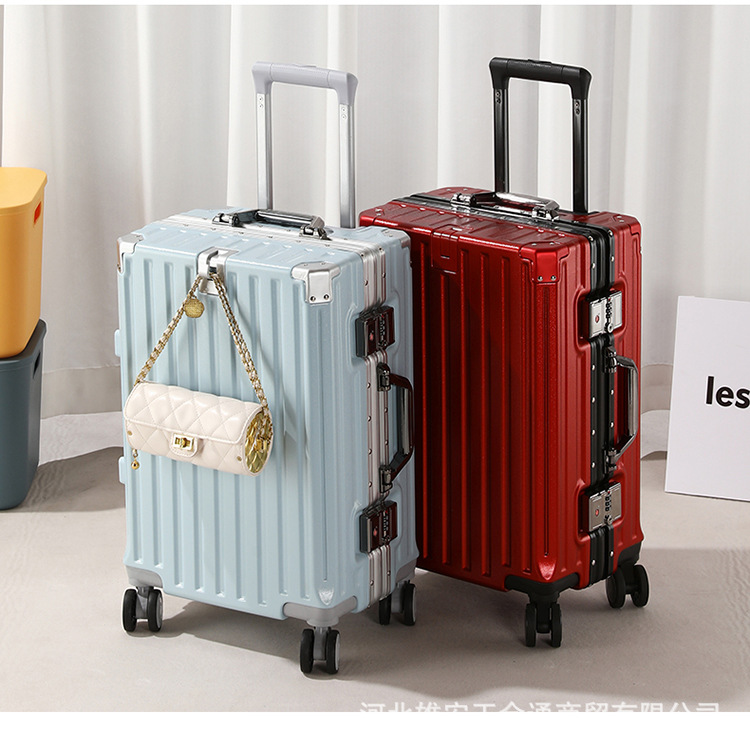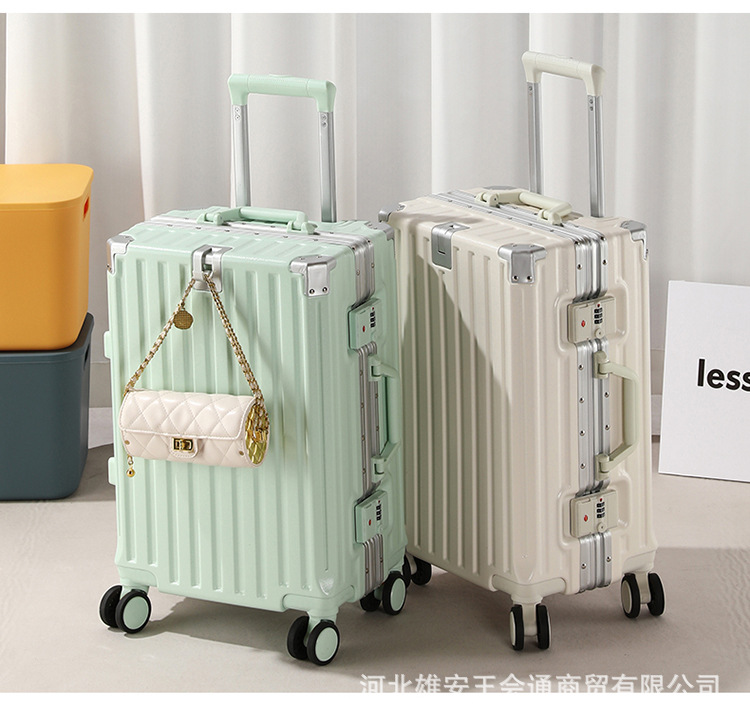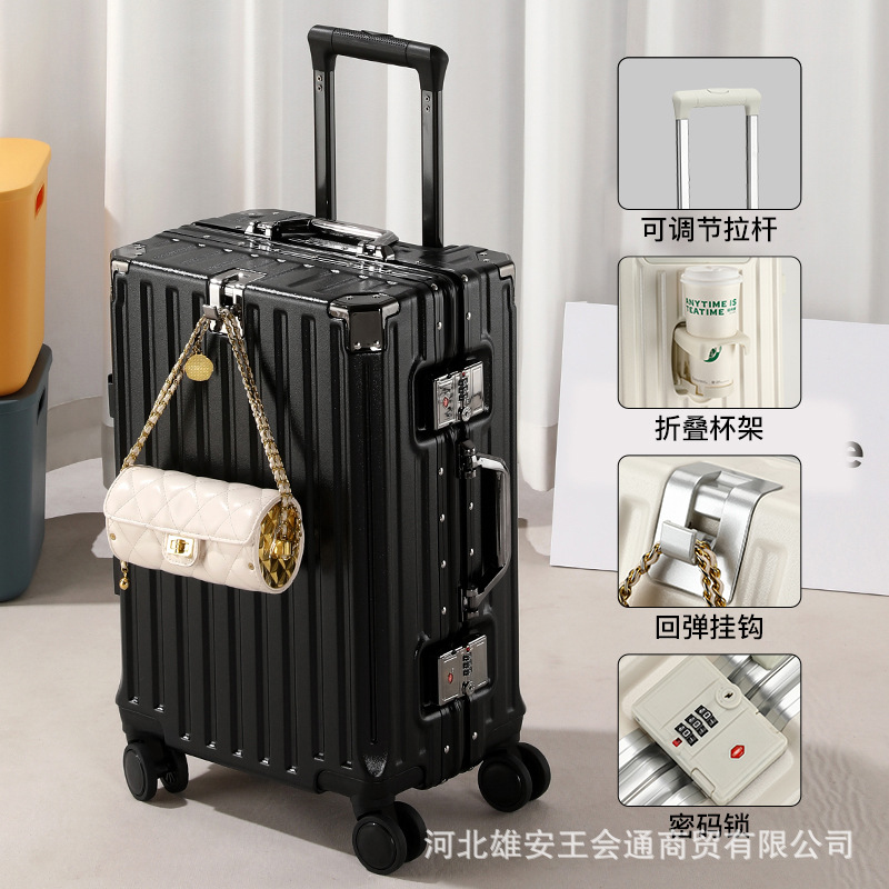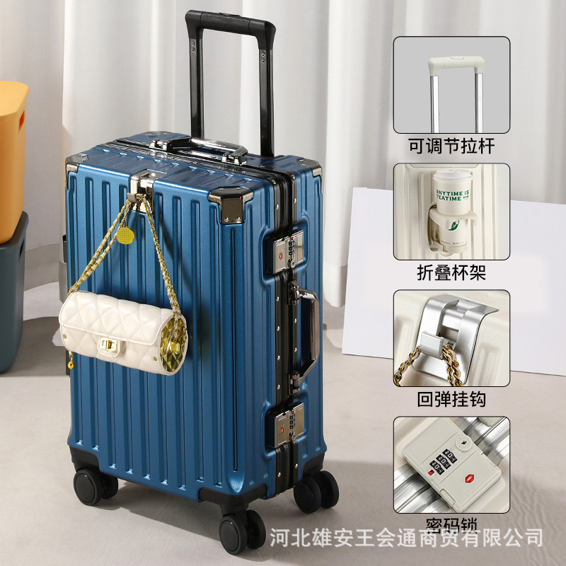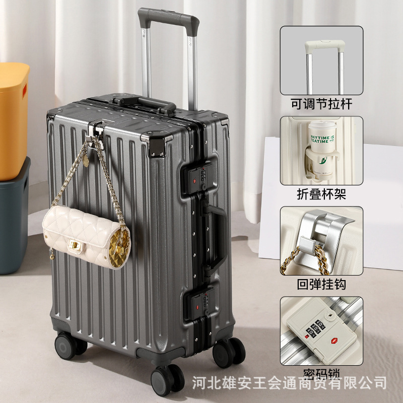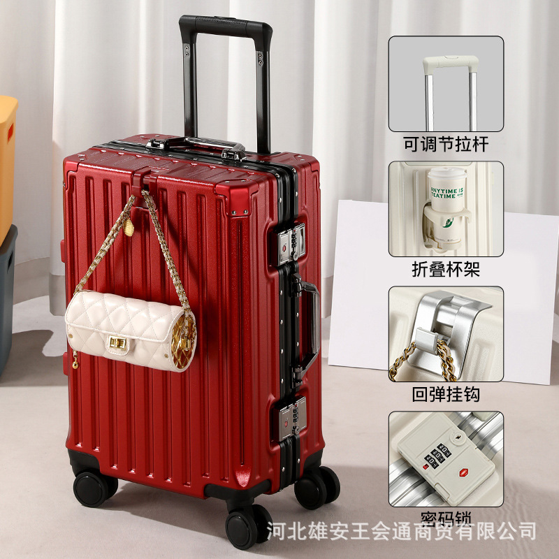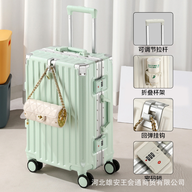 수화물 유니버설 휠 알루미늄 프레임 트롤리 케이스 여성 학생 20 인치 컵 홀더 여행 가방 탑승 암호 상자 도매 28 인치스토어 가기
