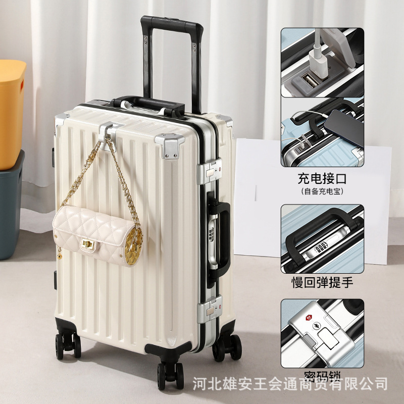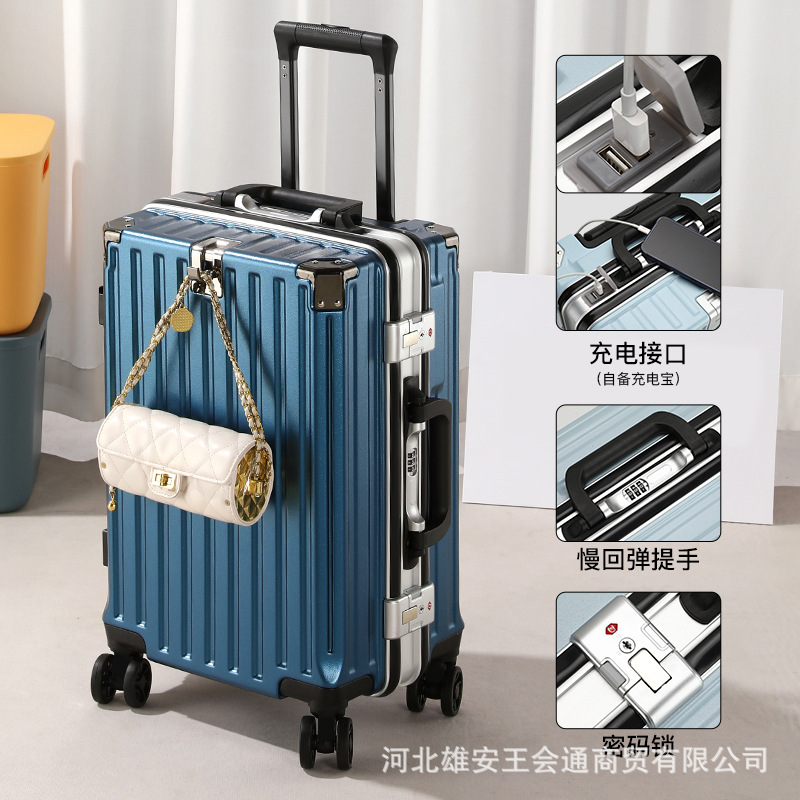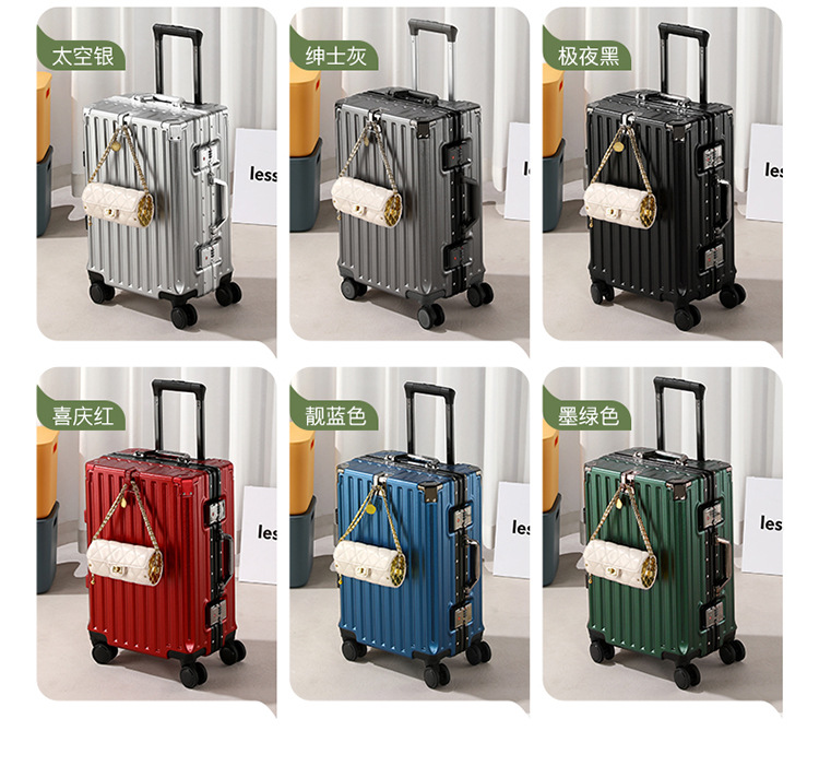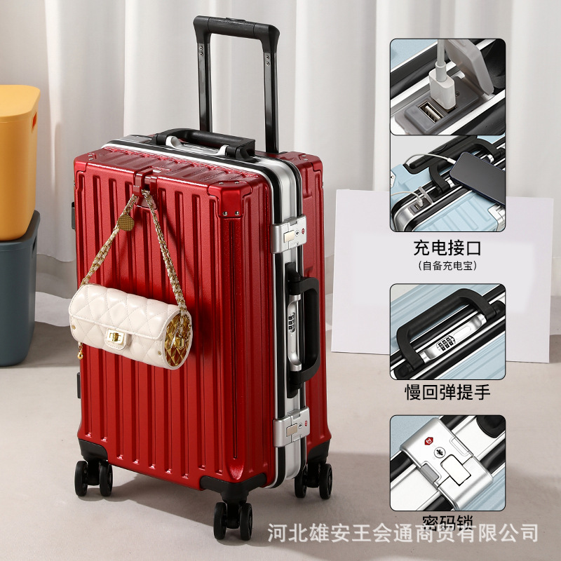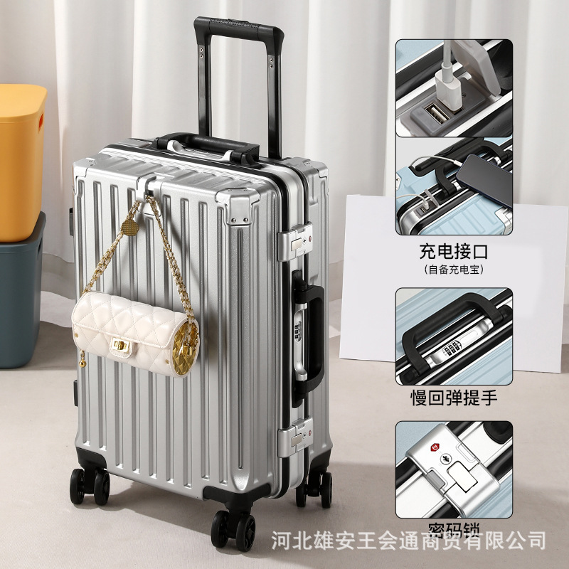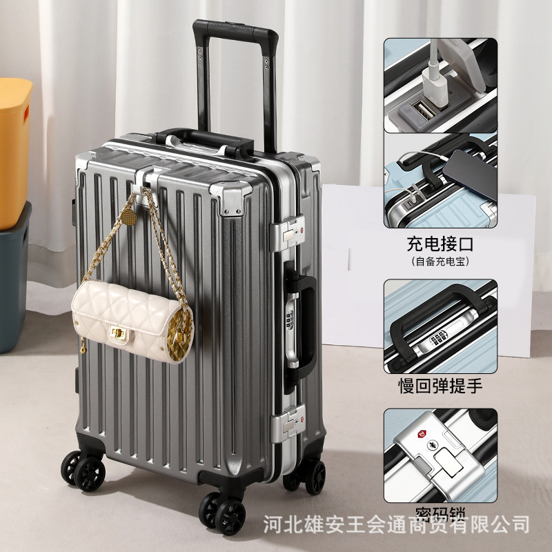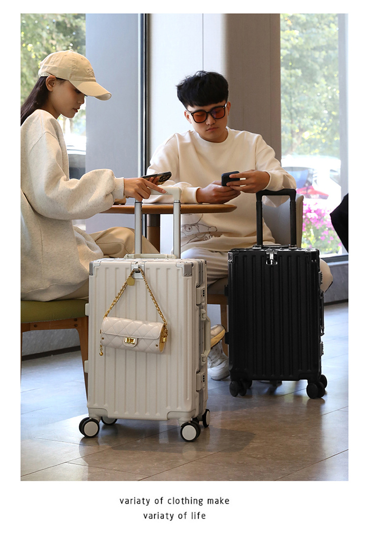 수화물 유니버설 휠 알루미늄 프레임 트롤리 케이스 여성 학생 20 인치 컵 홀더 여행 가방 탑승 암호 상자 도매 28 인치스토어 가기