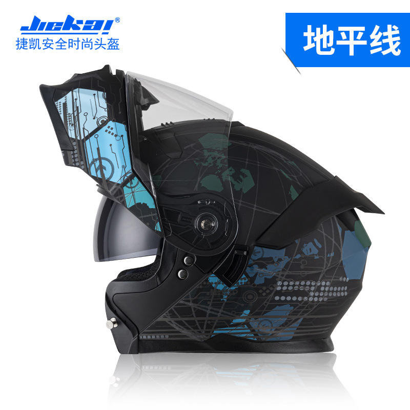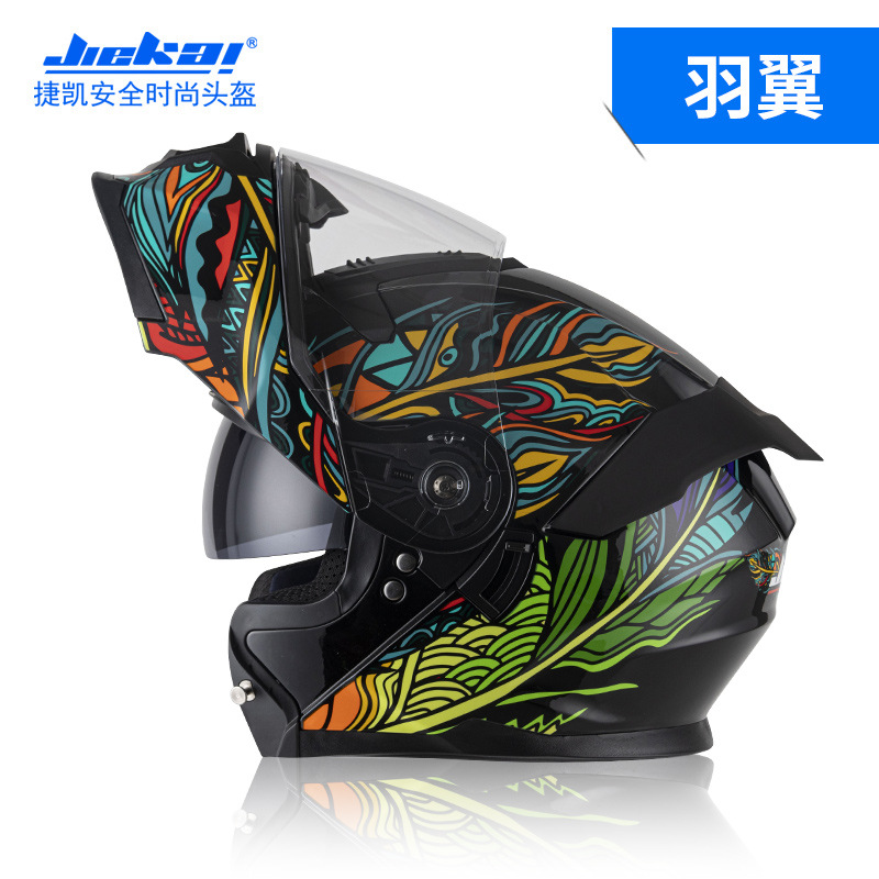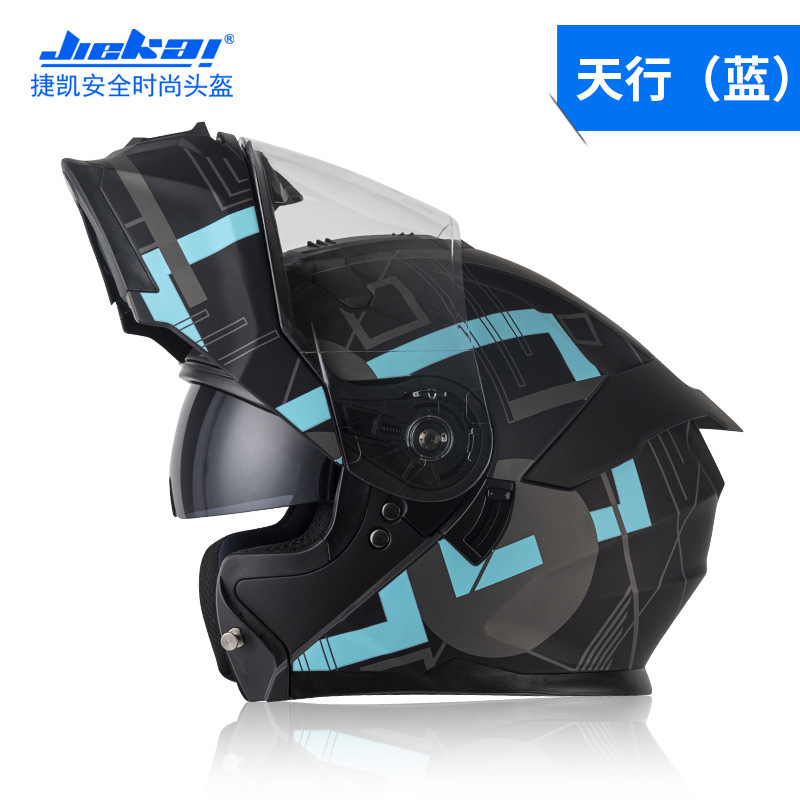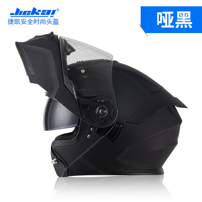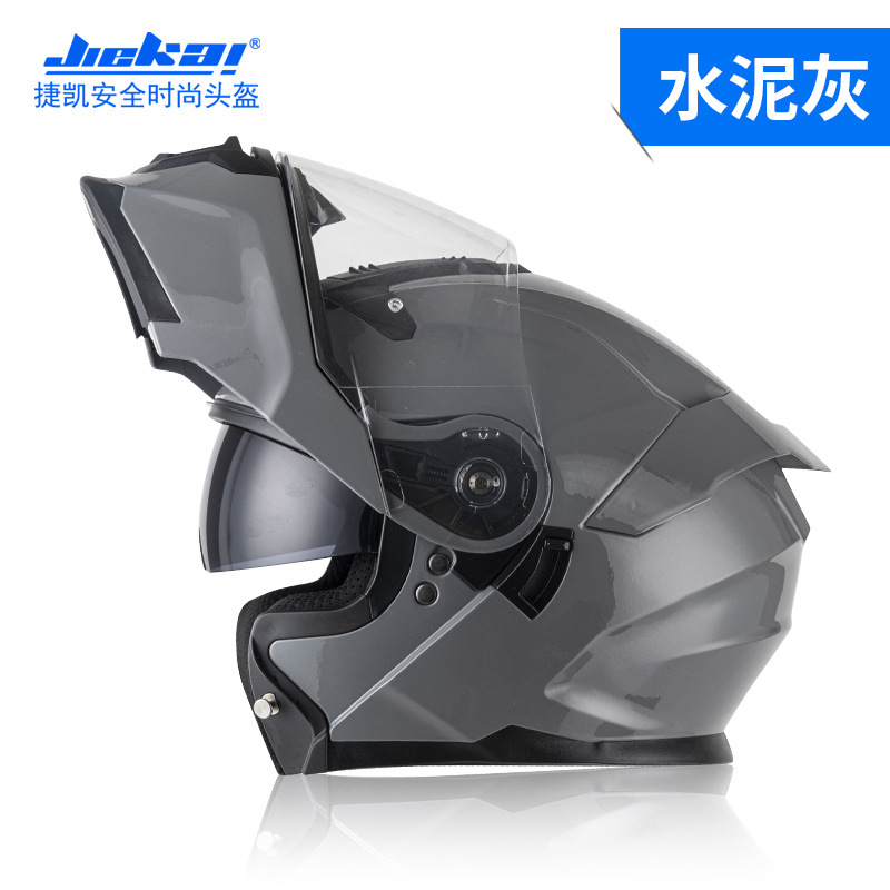 Jiekai 전기 오토바이 헬멧 풀 헬멧 풀 커버 노출 헬멧 남성용 더블 렌즈 오토바이 헬멧 헬멧 DOT