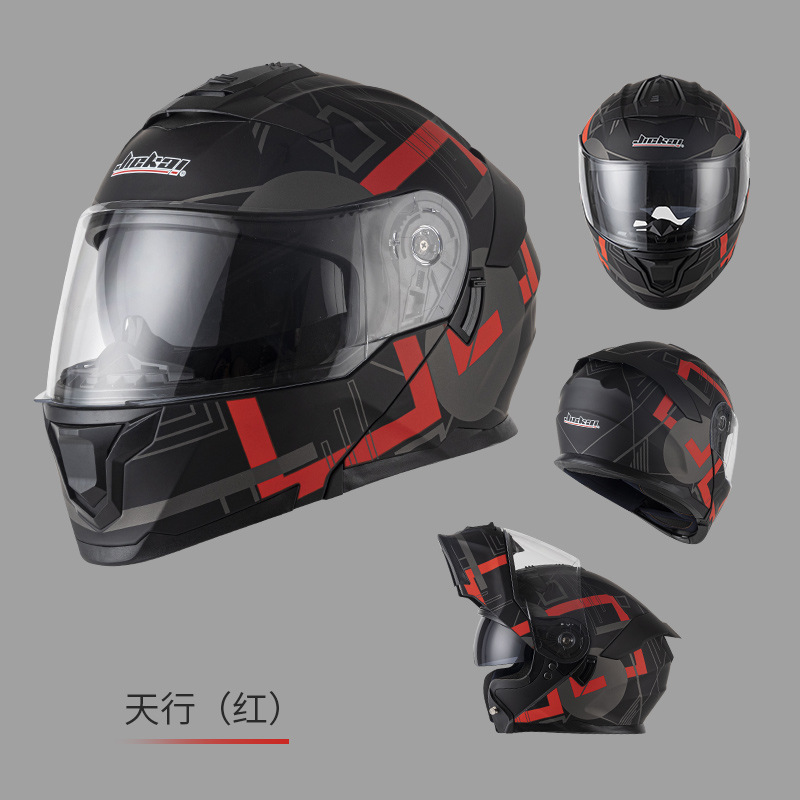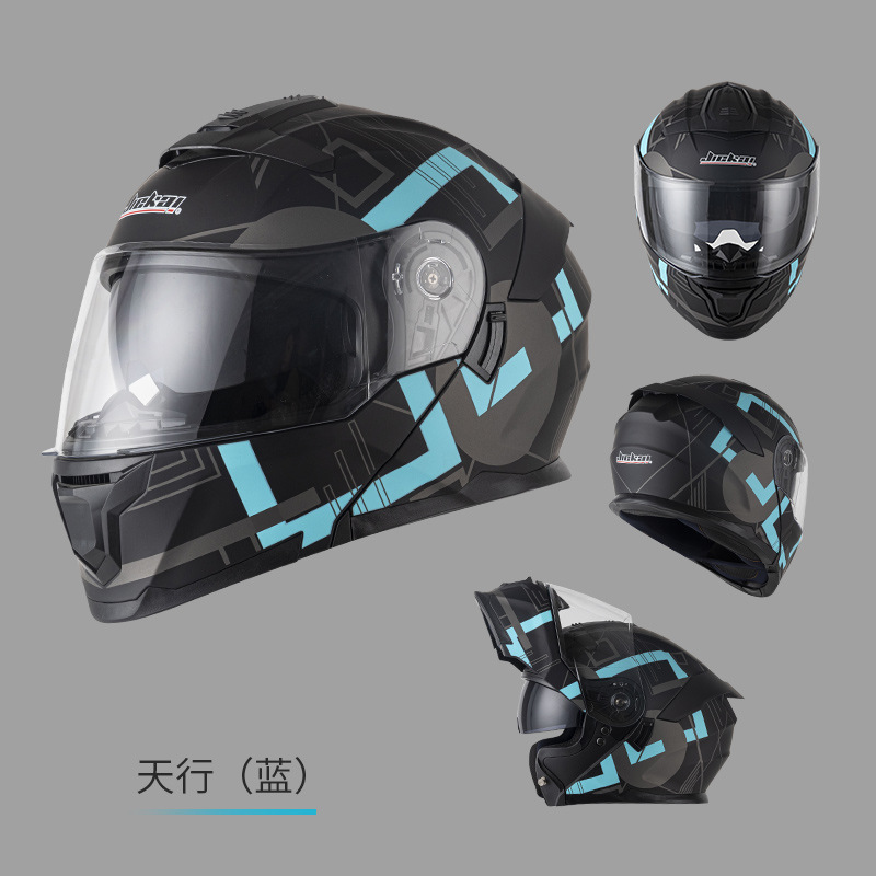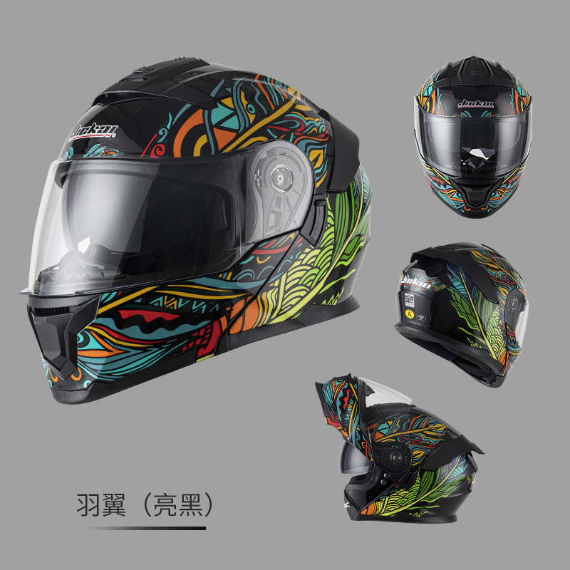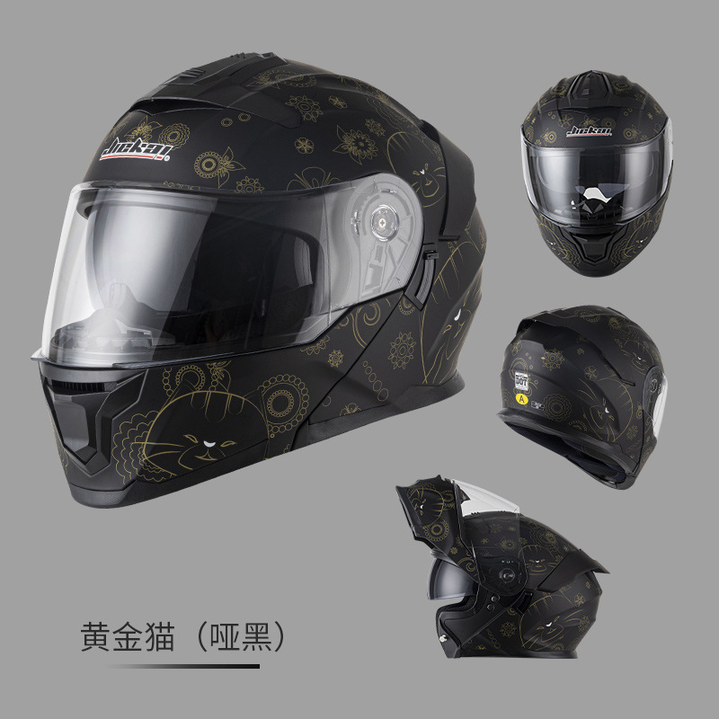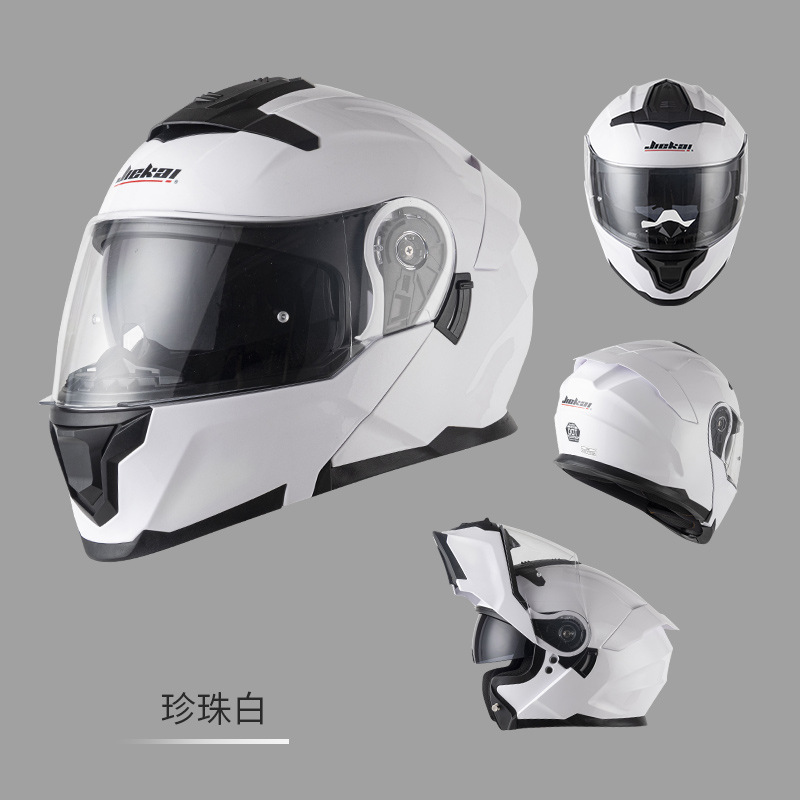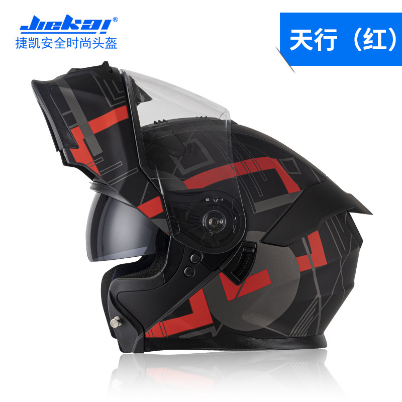 Jiekai 전기 오토바이 헬멧 풀 헬멧 풀 커버 노출 헬멧 남성용 더블 렌즈 오토바이 헬멧 헬멧 DOT
