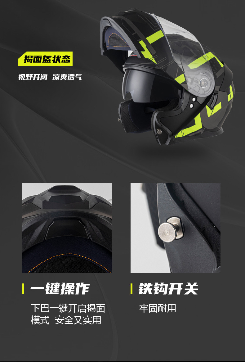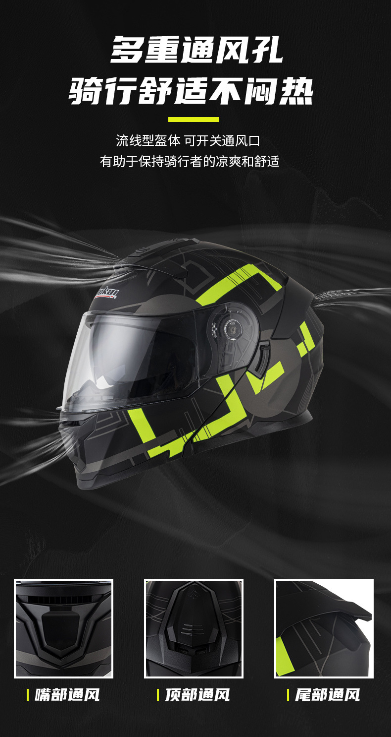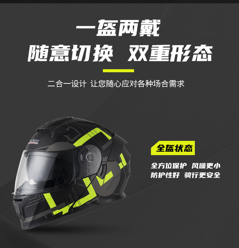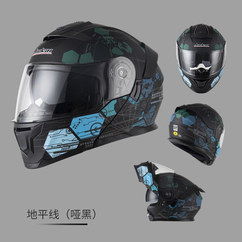 Jiekai 전기 오토바이 헬멧 풀 헬멧 풀 커버 노출 헬멧 남성용 더블 렌즈 오토바이 헬멧 헬멧 DOT스토어 가기